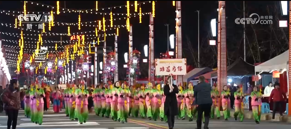 向舞台走去的是非遗方阵从前到后分别是钱杆舞、花灯戏,以及高矮人舞这三个节目都是余庆当地的贵州省级非遗。每当逢年过节的时候,当地群众都会打扮一番来到街头,向周围的观众们送去节日的祝福。