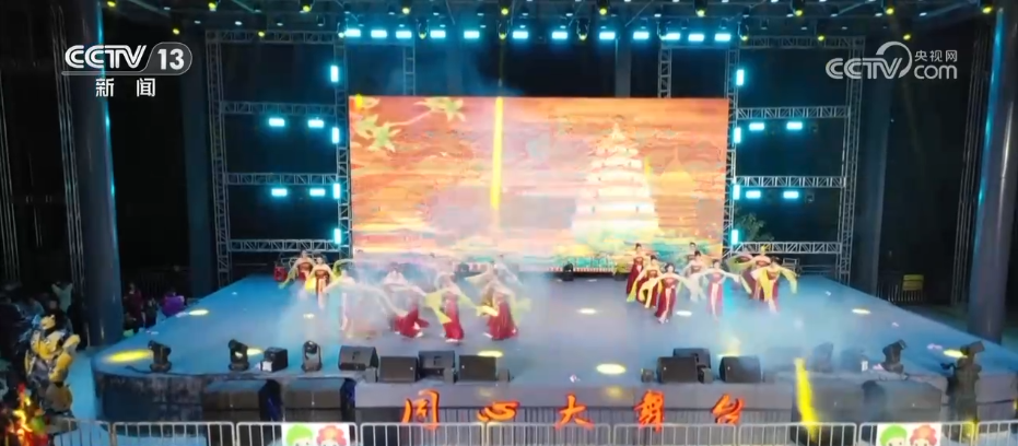 赏完了冰雕雾凇,大家可能已经听到了现场热闹的音乐声,此刻,迎接新年的预热演出已经开场,演员们身着藏族服饰跳起欢快的锅庄舞,舞蹈和歌声中满是对新年的喜悦与期待。