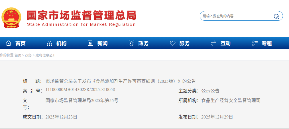 为规范食品添加剂生产许可,加强对食品添加剂生产企业的监督管理,近日,市场监管总局发布《食品添加剂生产许可审查细则(2025版)》(以下简称《细则》)。《细则》共十章57条,充分考虑食品添加剂生产许可审查特殊性,保持与《食品生产许可管理办法》《食品生产许可审查通则》的衔接,从以下三个方面进一步细化审查要求。