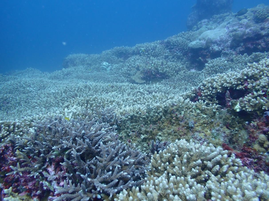 黄岩岛国家级自然保护区中部连片生长的分枝状珊瑚。(来源:《黄岩岛珊瑚礁生态调查报告》)
