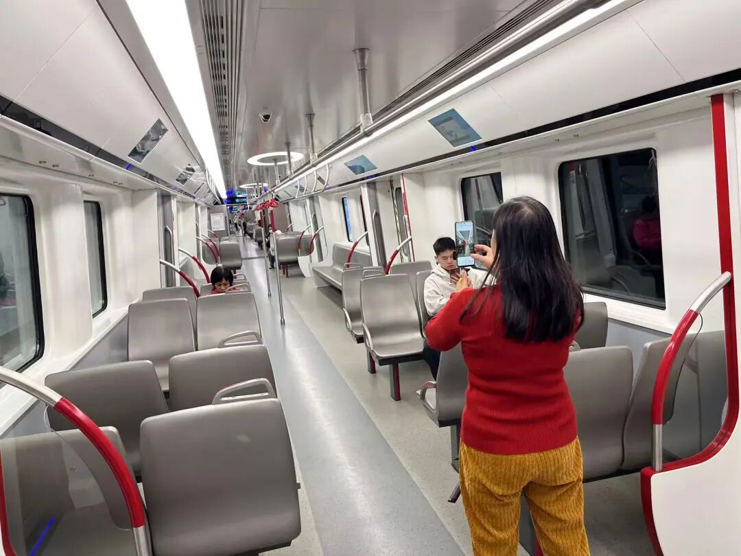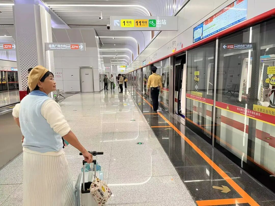 年过六旬的街坊翠翠,拖着行李箱,也是专程来“饮头啖汤”。“我家住在市广路,平时就喜欢拖着箱子搭地铁到处游,22号线一直很舒服,车站宽敞,有位置坐。今天来感受一下后通段,以后去市区、佛山玩就更方便了。”