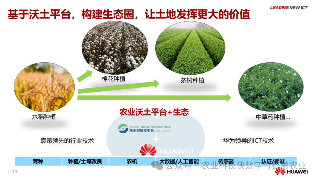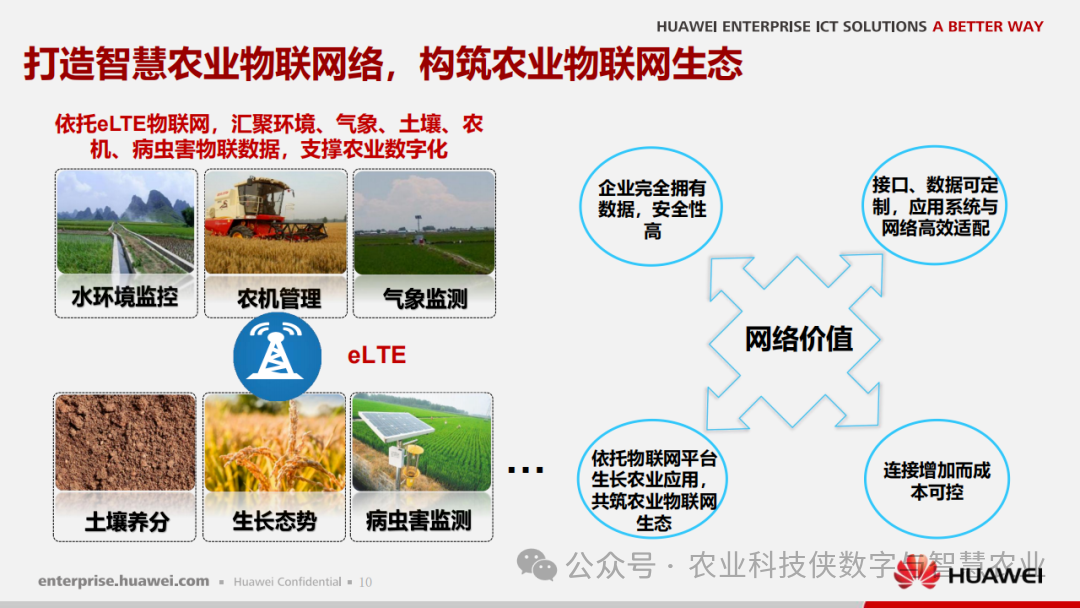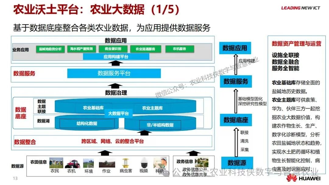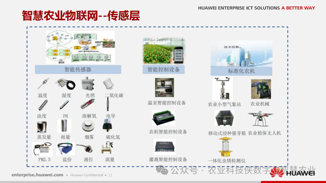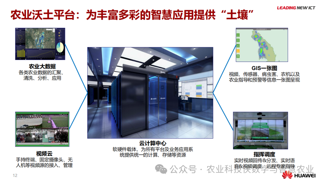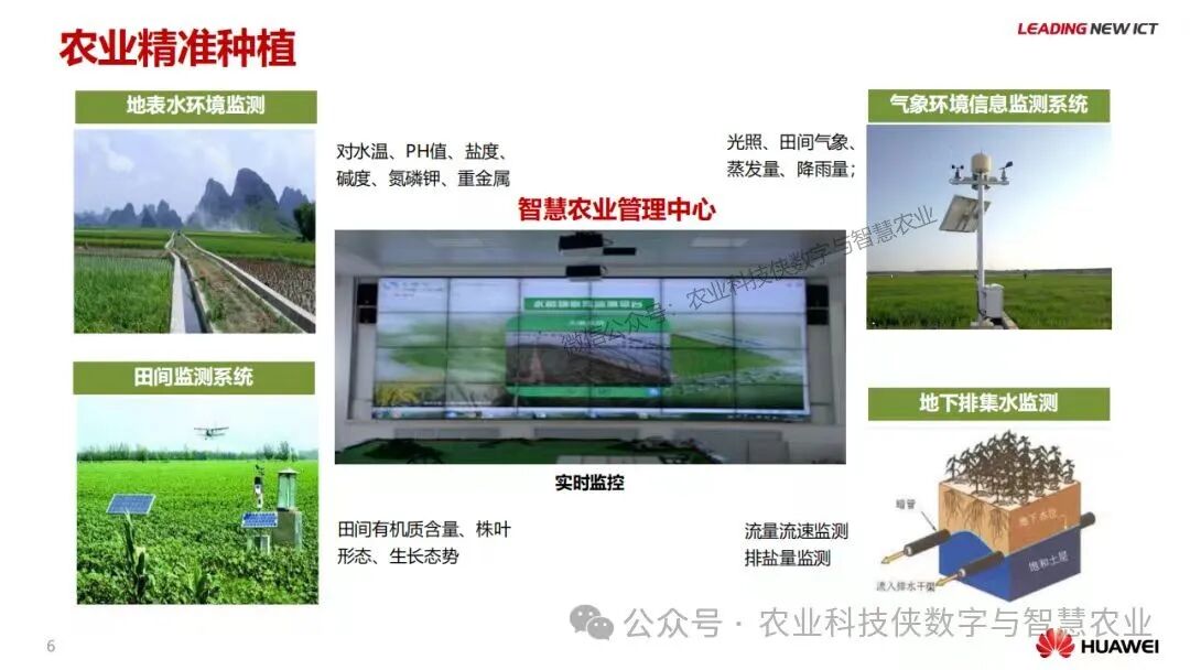华为,作为全球领先的信息与通信技术(ICT)解决方案提供商,正积极拓展其技术边界,将创新的ICT技术应用于农业领域,开创智慧农业的新篇章。华为智慧农业解决方案,通过整合先进的物联网、云计算、大数据分析和人工智能技术,旨在打造一个高效、可持续、智能化的农业生态系统。这一解决方案不仅能够实现农业生产的精准化管理,优化资源配置,还能极大提高农业生产效率,确保食品安全,同时为农业可持续发展贡献力量。接下来,我们将展示这一智慧农业方案。
