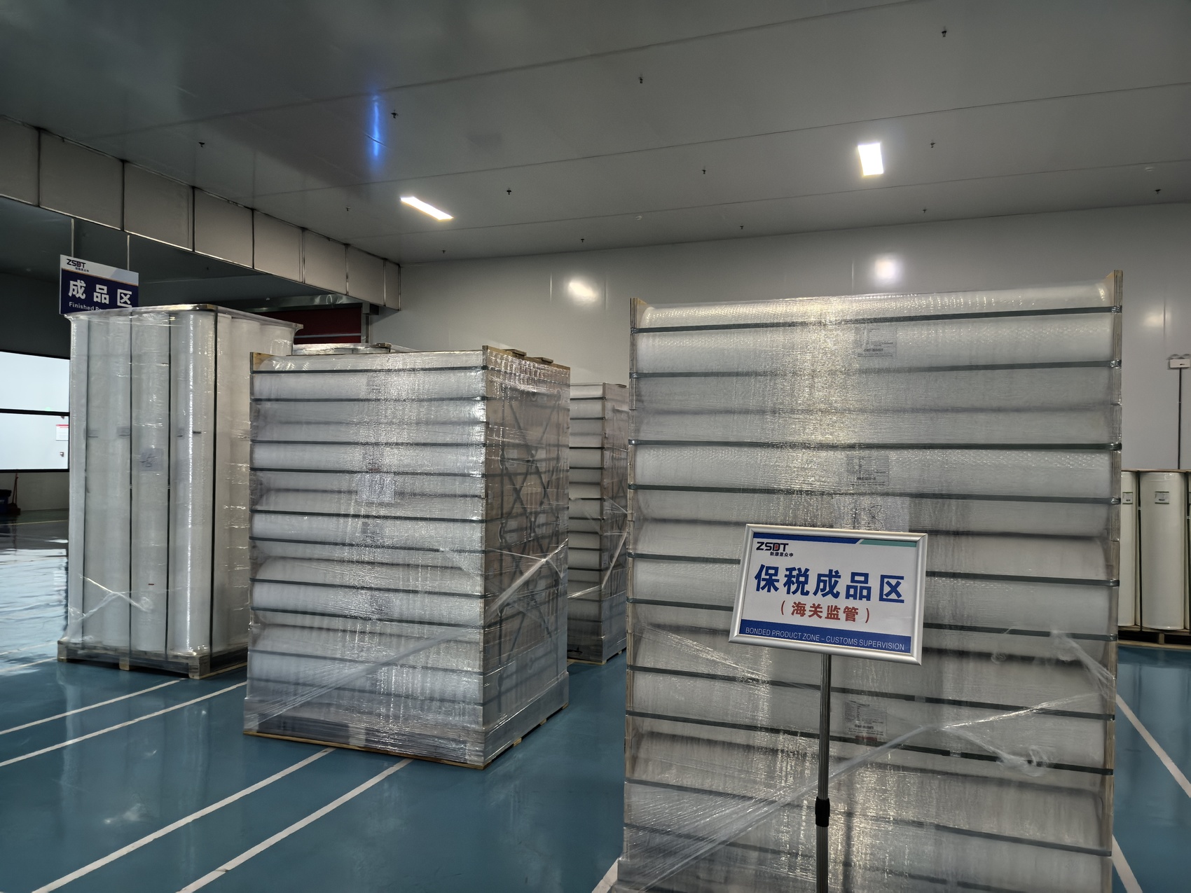 综保区内,受海关监管的预涂膜出口产品。(郭荞璐 摄)