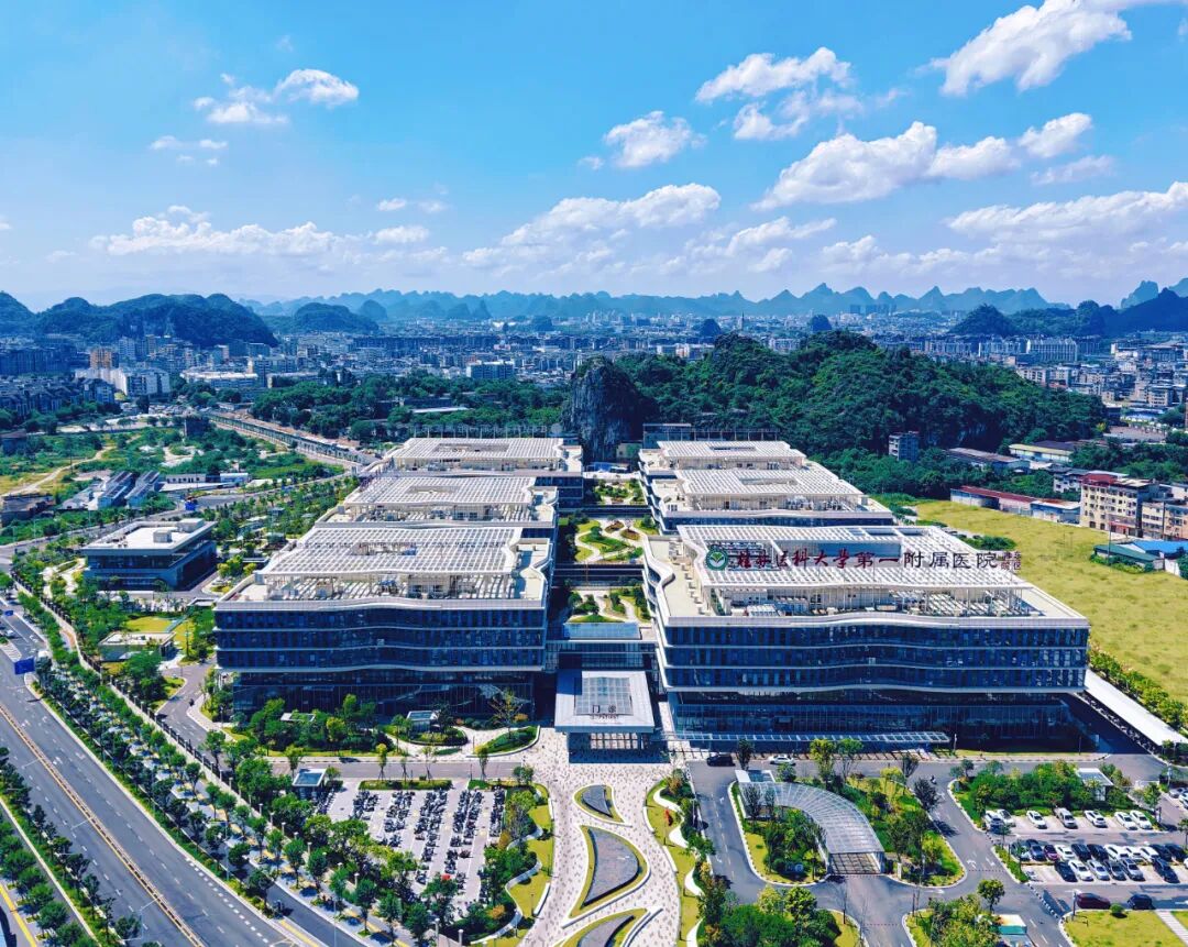从融合桂林山水意蕴的“空中花园”与错落有致的园林景观,到宽敞明亮的“一站式”服务中心与医疗长廊;从配备3.0T磁共振、256排螺旋CT等“硬核”设备的医技科室,到区域领先的消化内镜中心与干细胞临床研究平台……桂林医科大学第一附属医院漓东院区将尖端科技、人性化设计与温暖服务融于一体,为区域内患者提供了现代化的就医体验。