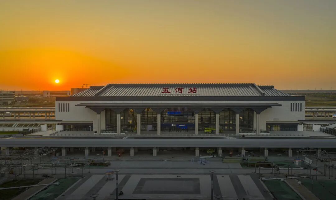 五河站位于安徽省蚌埠市五河县,站房以“徽风皖韵,秀美五河”为设计理念,立面提取徽派山墙建筑元素,将“绿水青山园中站,画里画外景中村”的美好愿景融入其中。