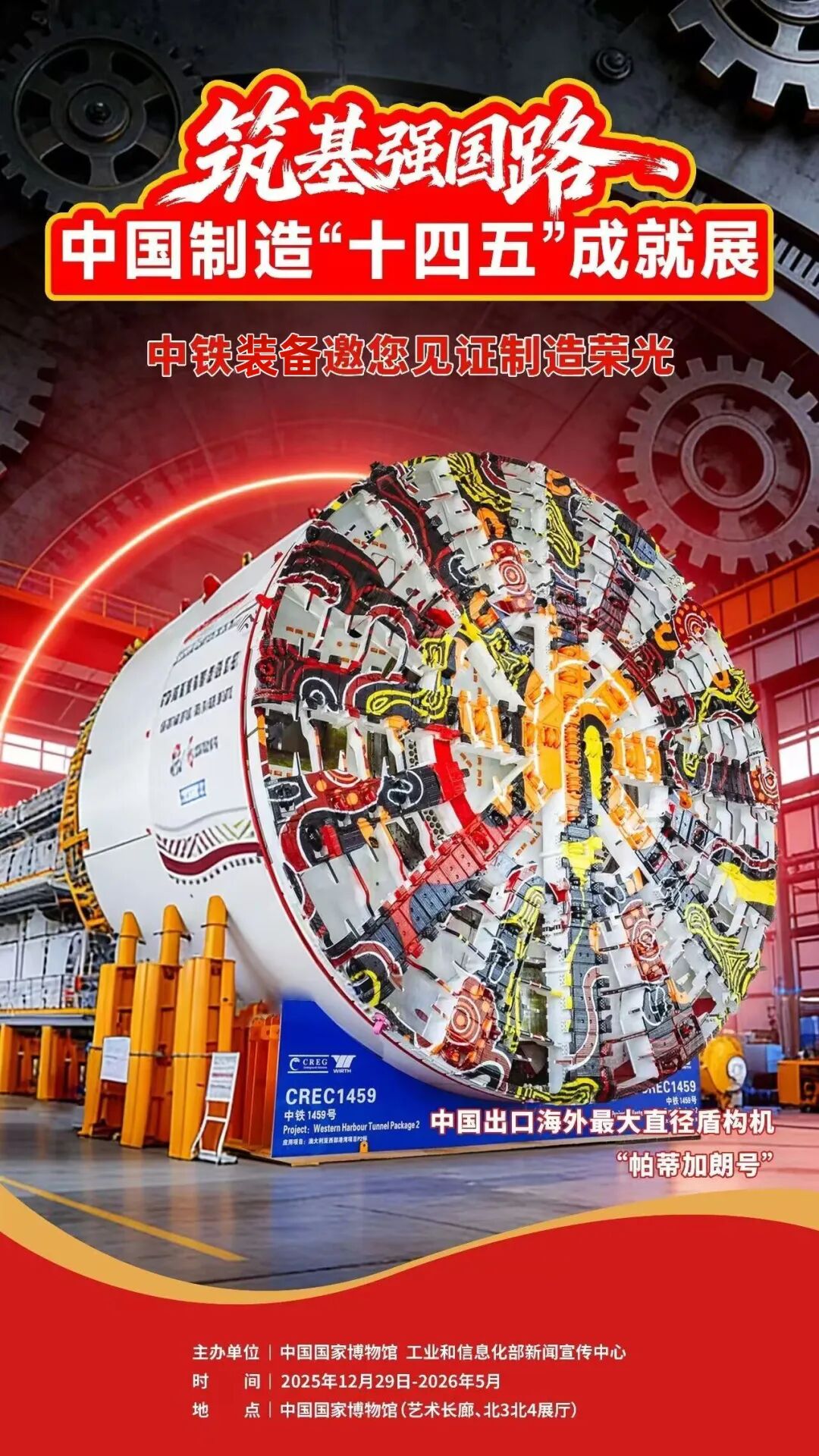 12月29日,由中国国家博物馆、工业和信息化部新闻宣传中心联合主办的“筑基强国路——中国制造‘十四五’成就展”在中国国家博物馆隆重开幕。在这场集中展示我国制造业跨越式发展的国家级盛会上,中铁装备自主研发、我国出口海外的最大直径盾构机“帕蒂加朗号”(模型)荣耀亮相,向世界展现中国高端装备“走出去”的硬核实力与创新自信。