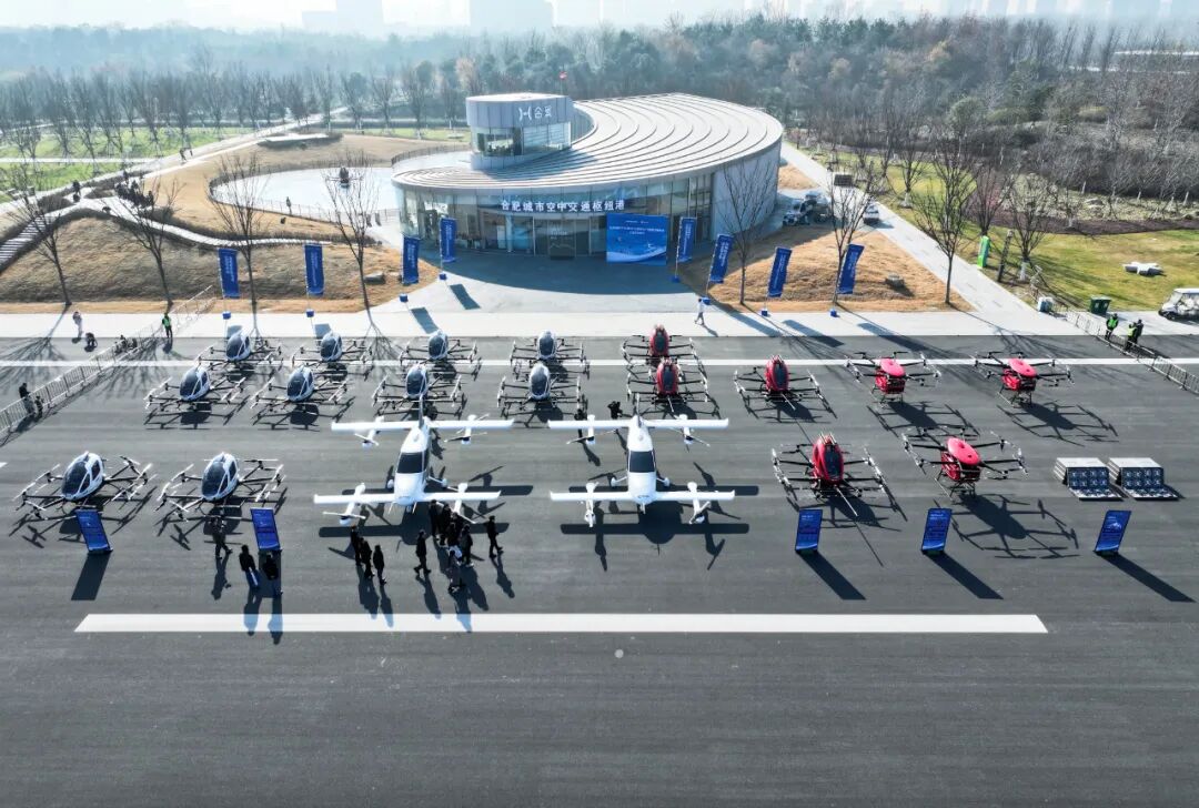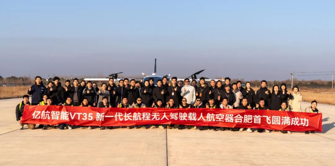 12月28日,亿航智能VT35长航程无人驾驶eVTOL航空器在合肥白龙机场首飞成功。