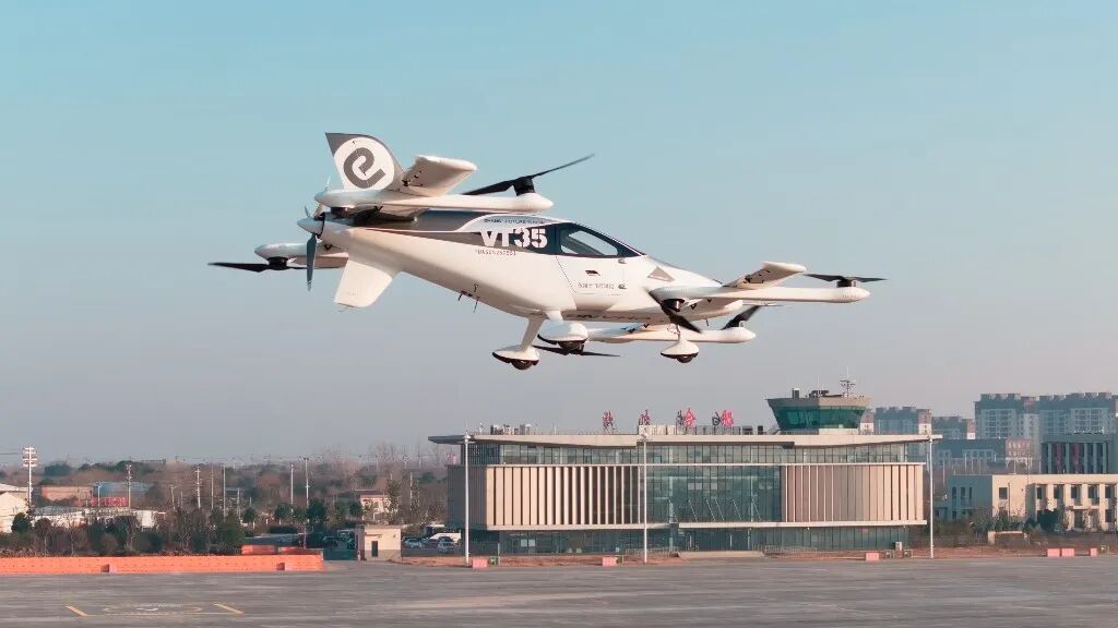 12月28日,亿航智能VT35长航程无人驾驶eVTOL航空器,在合肥白龙机场成功完成首次公开飞行演示。