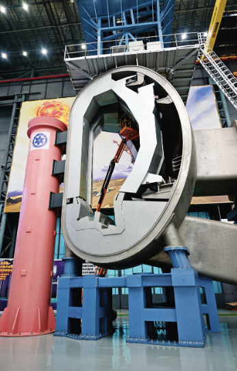 聚变堆主机关键系统综合研究设施“夸父”(CRAFT)八分之一真空室,偏滤器安装在真空室内部(2025 年 10 月 13 日摄) 周牧摄 / 本刊