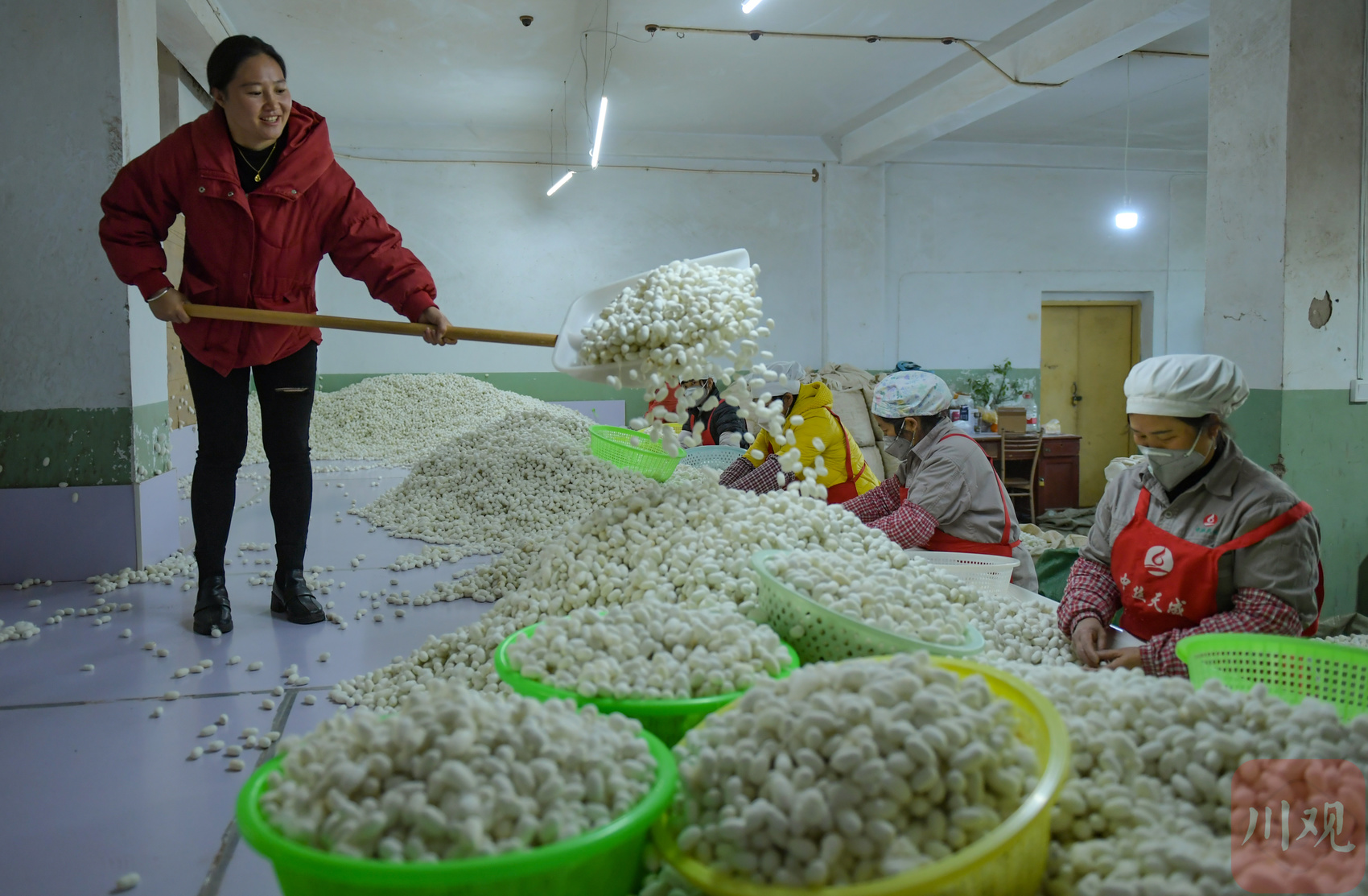 2025年12月28日,在位于攀枝花市盐边县桐子林镇金河村的中丝天成(攀枝花)丝绸公司缫丝厂内,工作人员正在选茧。