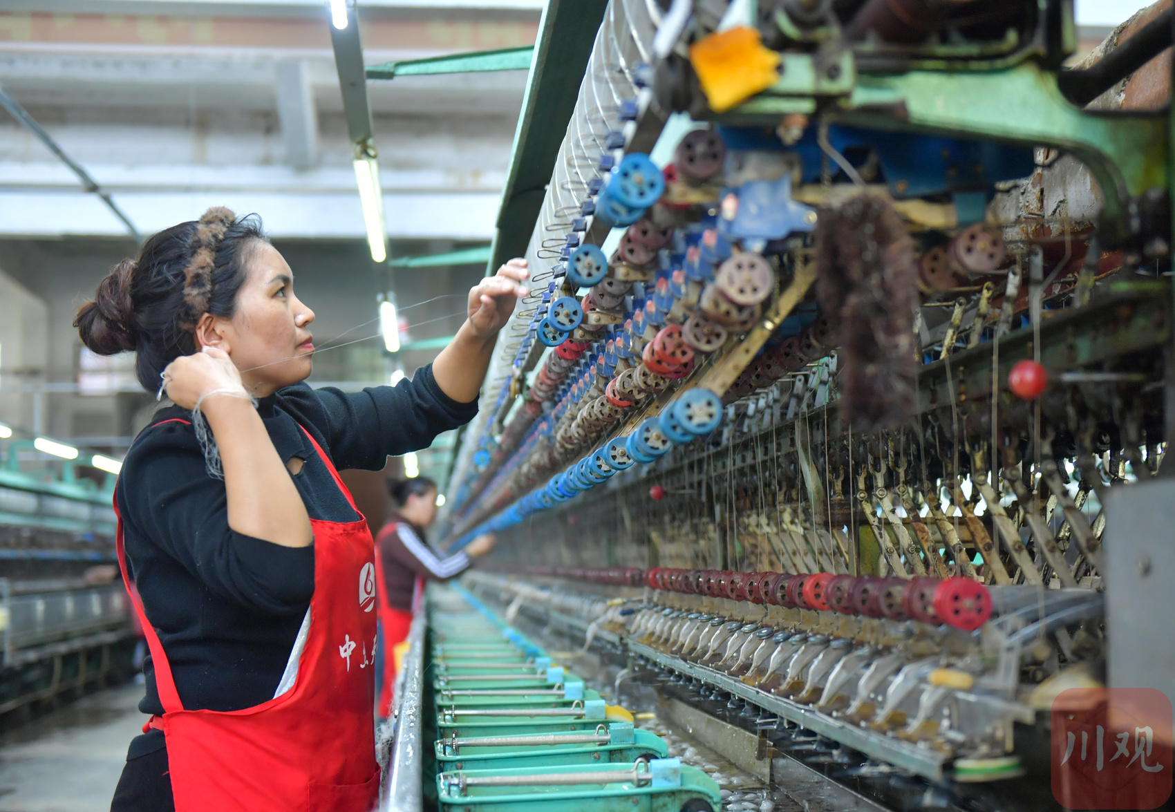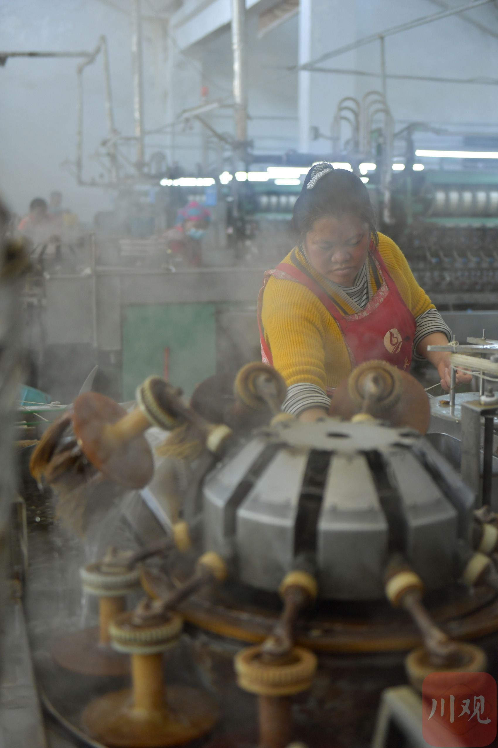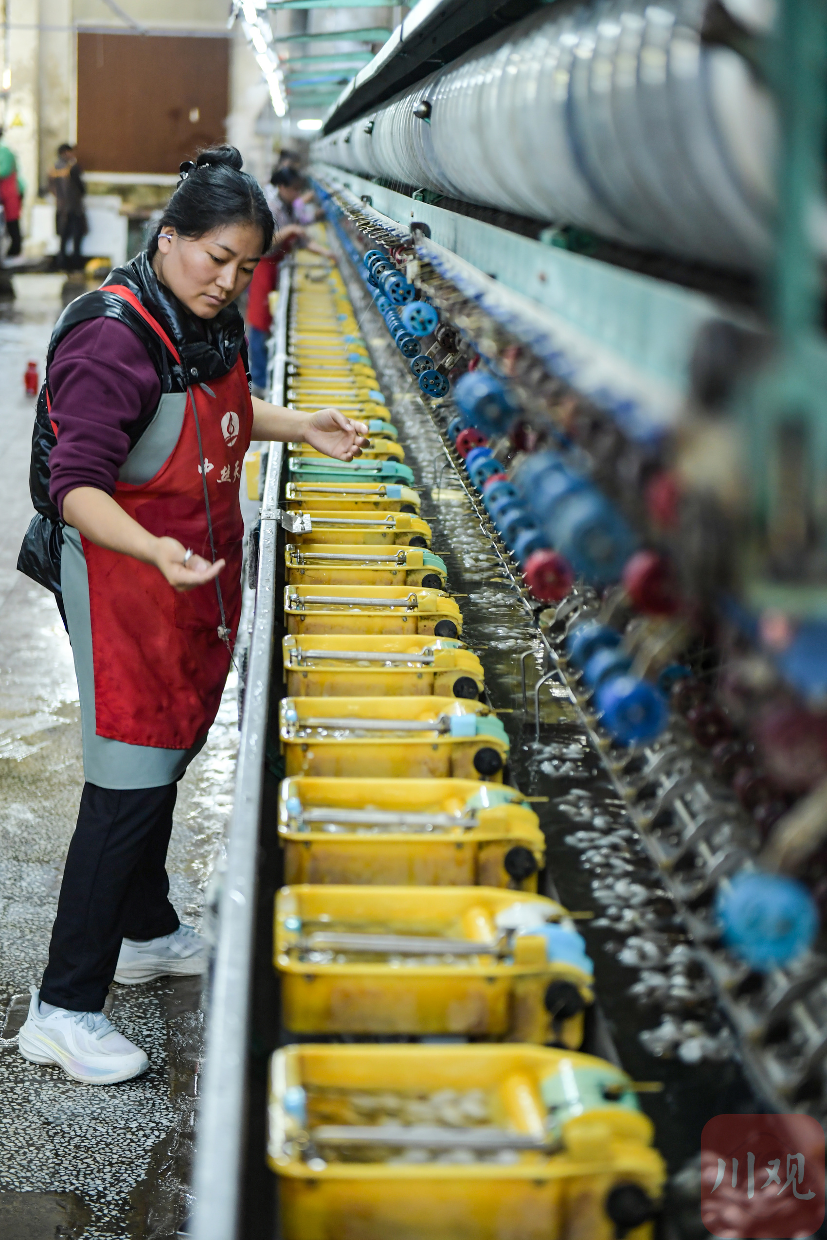 2025年12月28日,在位于攀枝花市盐边县桐子林镇金河村的中丝天成(攀枝花)丝绸公司缫丝厂内,工人正在编丝。