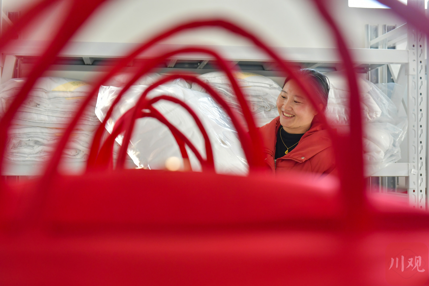 2025年12月28日,在位于攀枝花市盐边县桐子林镇金河村的中丝天成(攀枝花)丝绸公司缫丝厂内,工作人员正在整理制作好的蚕丝被。