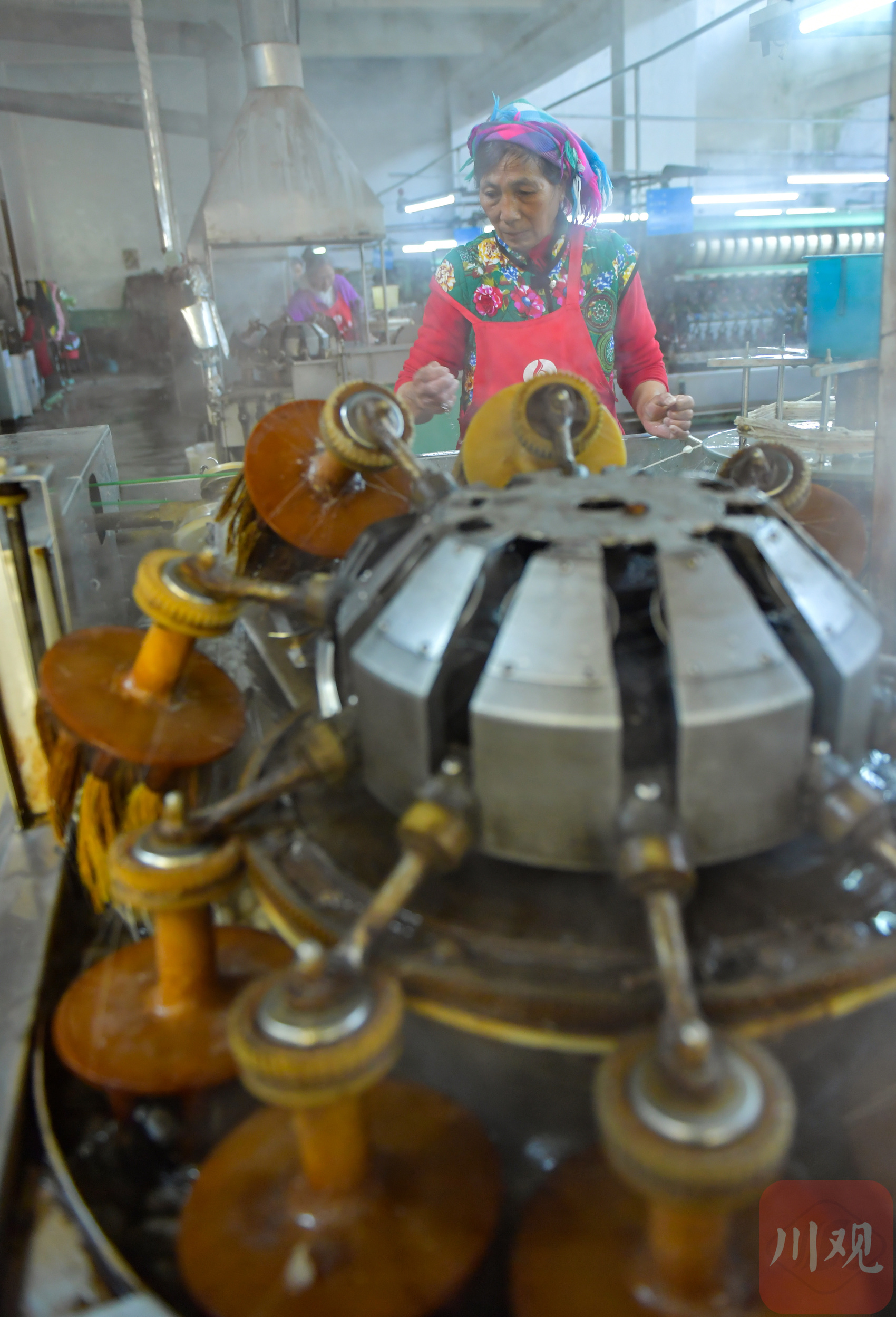 2025年12月28日,在位于攀枝花市盐边县桐子林镇金河村的中丝天成(攀枝花)丝绸公司缫丝厂内,工作人员正在缫丝。