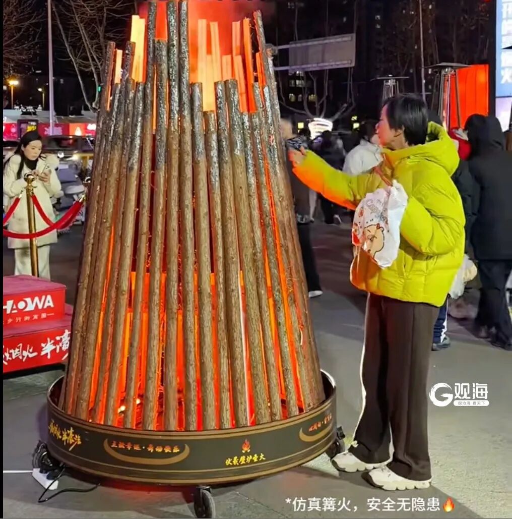 记者在现场看到,街区入口处的塔式火炉与仿真篝火已然成为新晋“打卡地”,温暖的火光点亮了冬夜街角,不少市民驻足取暖、拍照留念。“真的很暖和!一开始还以为是假的呢!”市民张先生的话道出了不少人的心声。