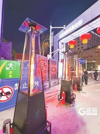 近日,青岛西海岸新区濠洼步行街正式升级为山东省首个供暖商业街区,塔式火炉与仿真篝火的组合亮相,让市民游客在冬夜逛街时告别寒冷,在热气腾腾的烟火气中感受别样的城市温暖。