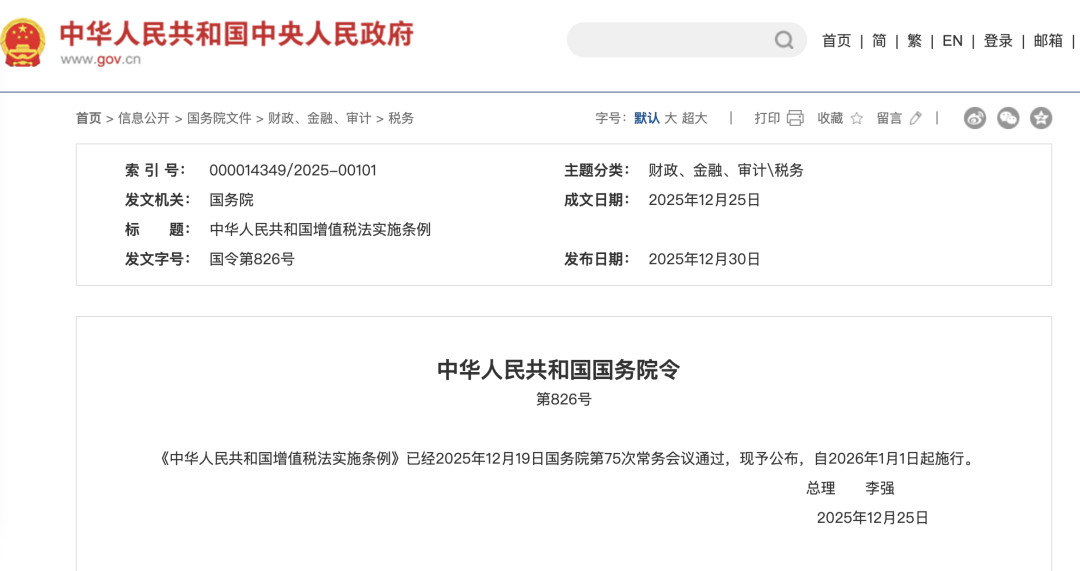 相关报道:中华人民共和国增值税法实施条例 全文