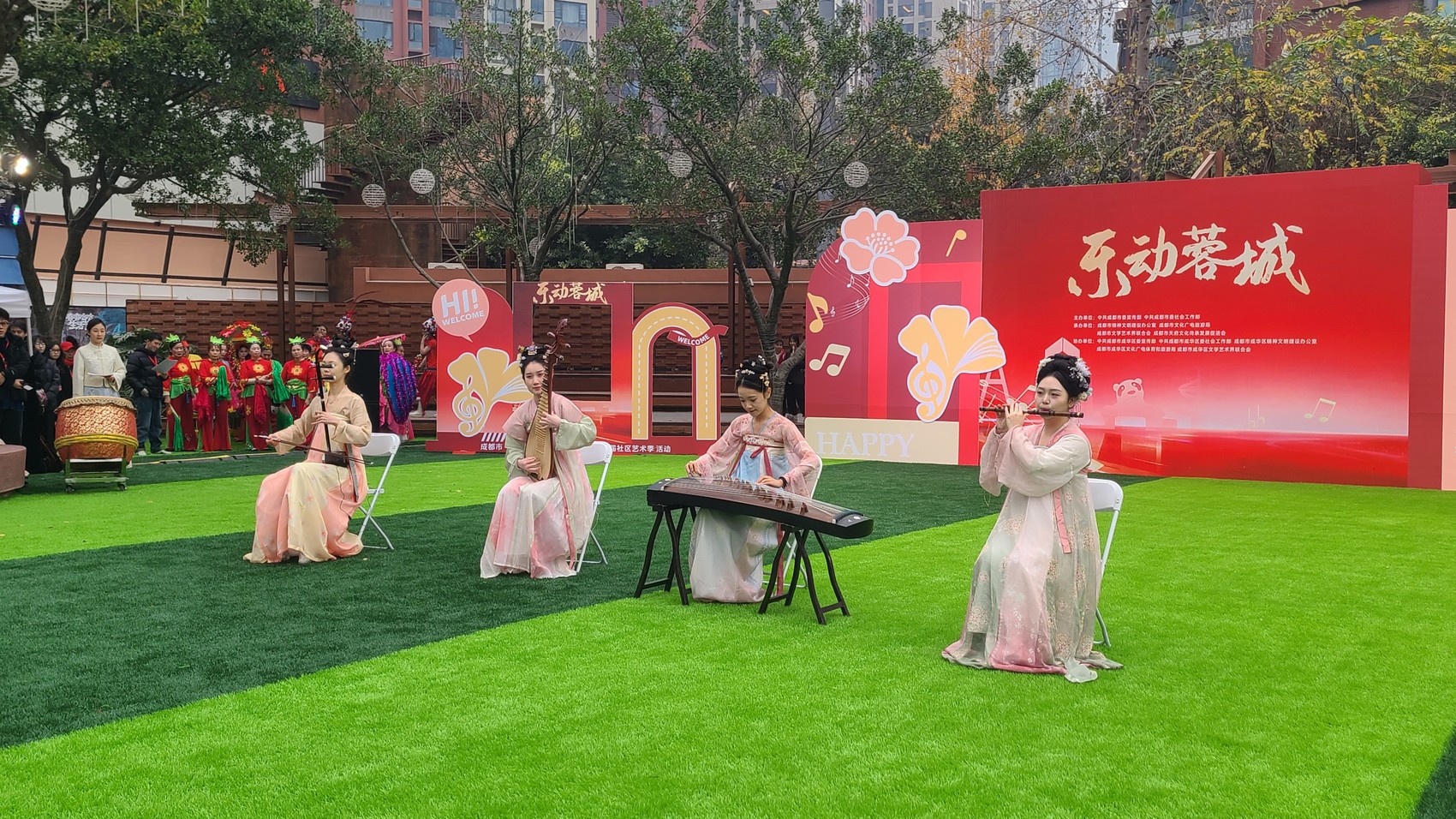 主会场东山音乐广场同样热度不减。下午和晚间两场文化惠民演出接连上演,既有国潮古风民乐演奏的婉转悠扬,也有现代舞的动感活力。由成华区民间文艺队伍带来的传统舞龙、非遗民俗等节目,更展现了深厚的群众文化基础和质朴的热情,赢得了市民游客最热烈的喝彩。