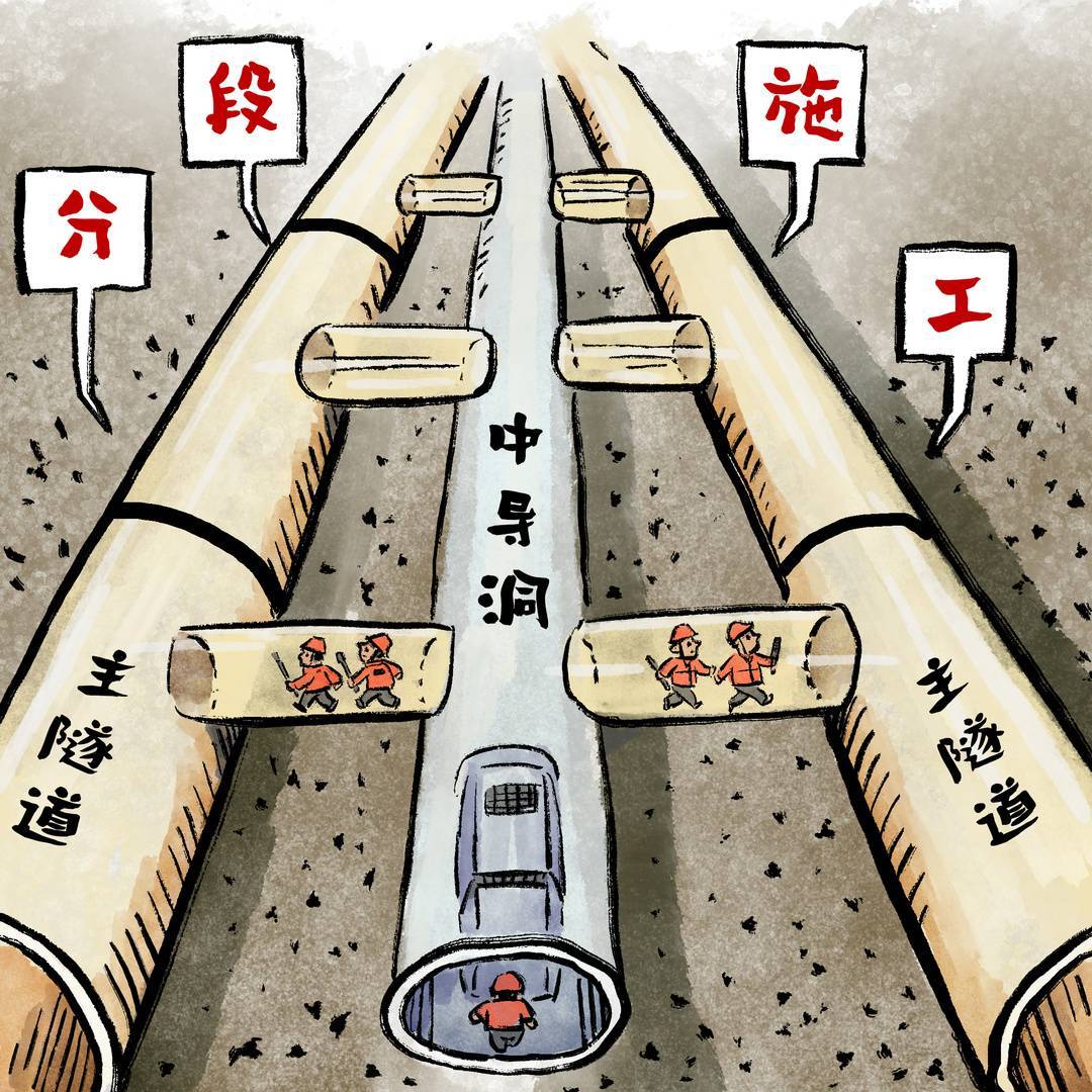 先打增加的中导洞,向两侧主洞打出横通道,就能把主洞分成若干小段,开辟出多个工作面同时施工,从而实现“长隧短打”。而实现这个创意的先决条件就是中导洞,也就是服务隧道的施工速度要快于左右两个用钻爆法施工的主洞,这就需要更为先进的装备和技术。