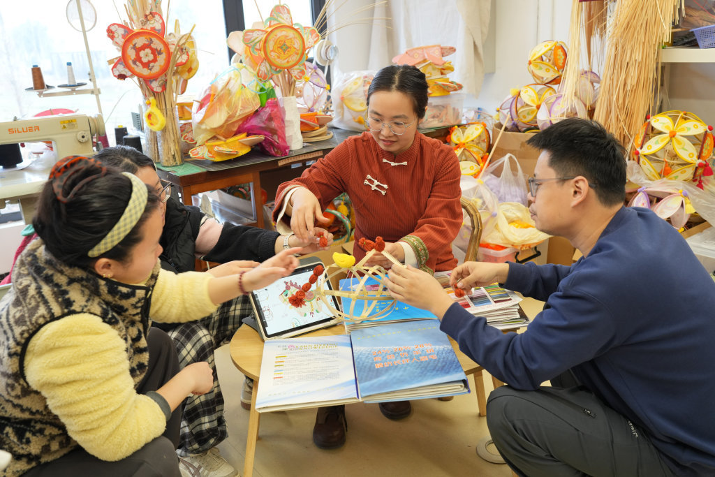 12月30日,徐无瑕(右二)和工作室的同事商讨设计方案。