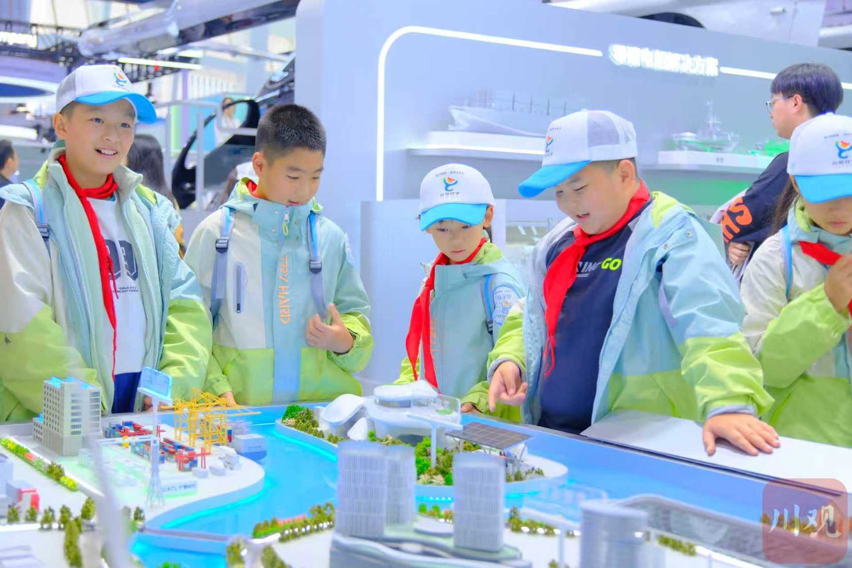 宜宾首个秋假,学生们在动力电池大会场馆研学。