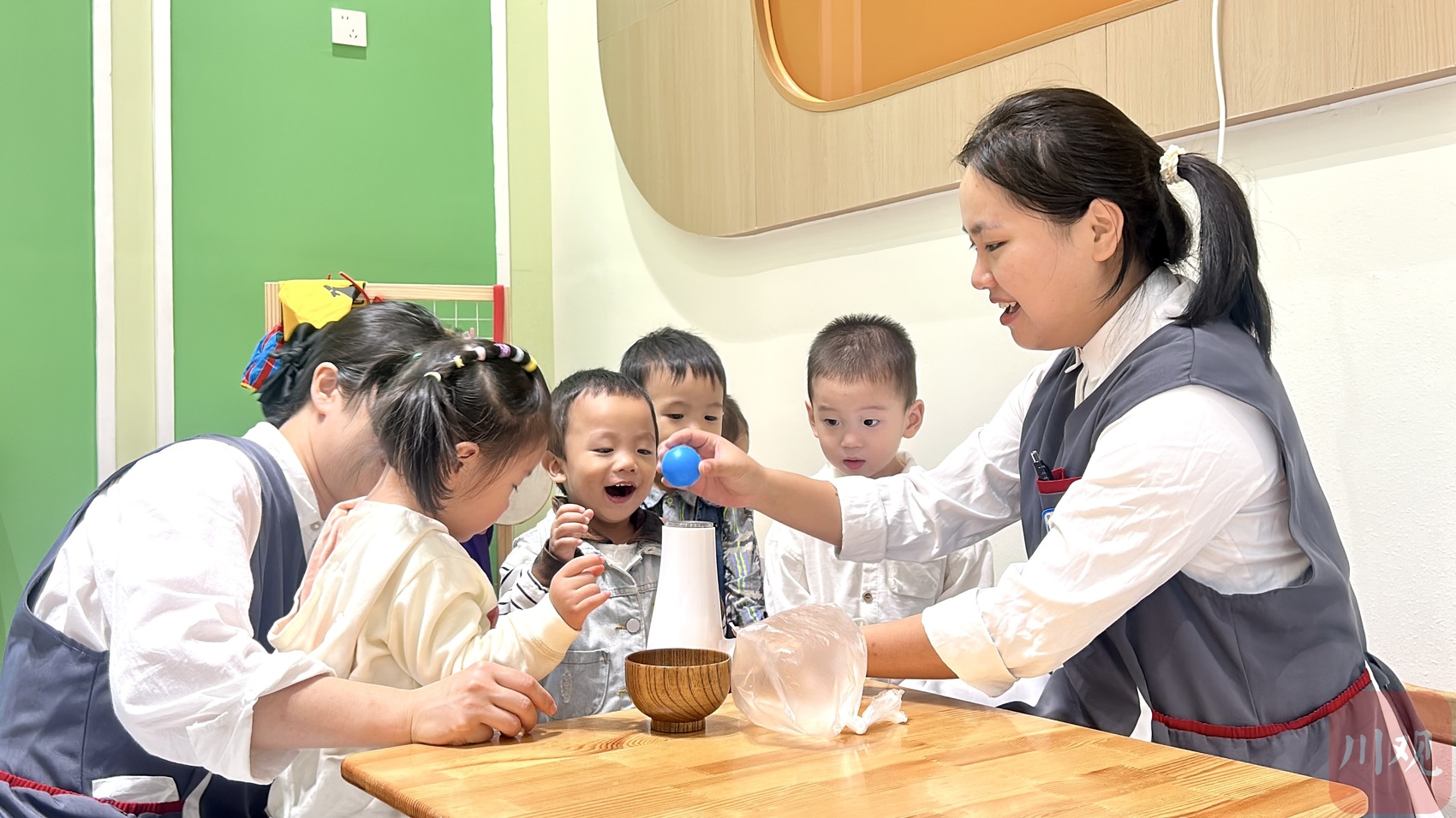 科教托育老师与孩子互动。