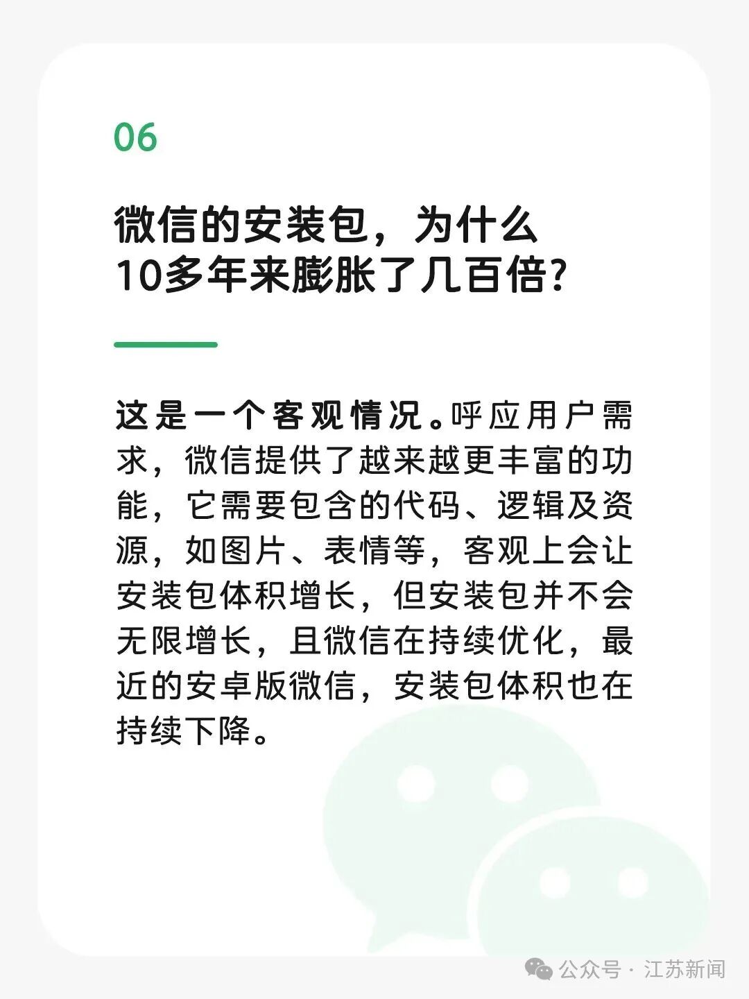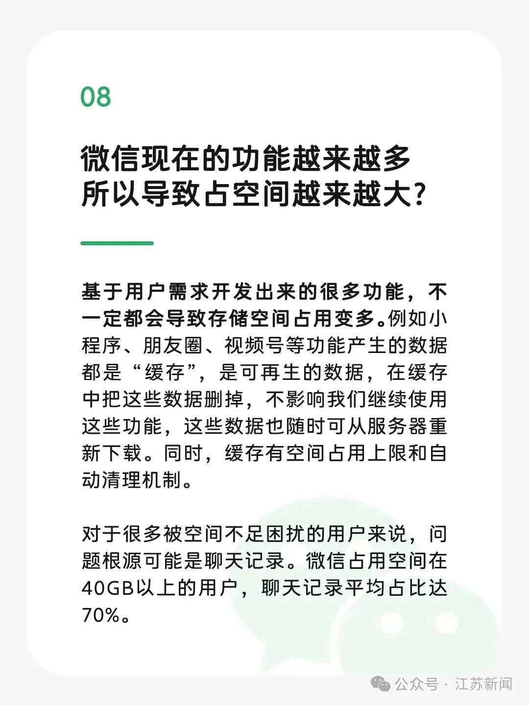 12月29日,微信发文回应关于“微信占存储空间”的几个误解:
