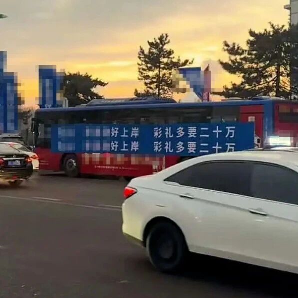 视频中,“来崇政好上岸,彩礼多要二十万”的广告横幅被贴在一辆公交车上,据了解,该网友展示的视频发布地点位于呼和浩特市,周边车辆车牌也有“蒙A”字样,该机构为一家考公辅导机构。