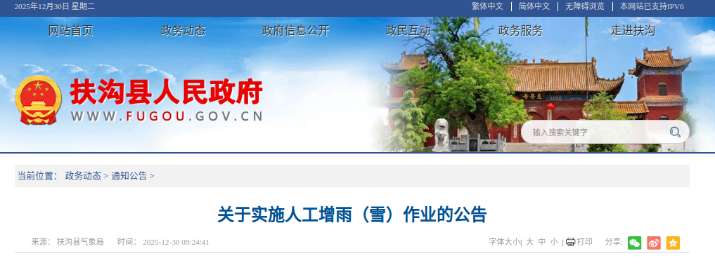 人工增雨(雪)作业的公告