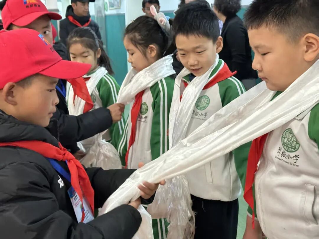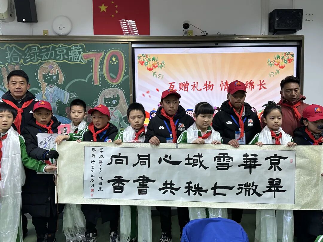 12月30日上午,一场特殊的少年先锋队联合队会拉开了序幕。北京那曲两地孩子相互佩戴红领巾、敬献洁白哈达,以最庄重又亲切的礼节表达彼此间的尊重与祝福。孩子们一起观看回顾了双方从写信相识到奔赴北京、准备礼物、期待相见的温情短片,聆听关于汉族元旦节日习俗和那曲游牧文化的生动介绍,在增进了解中深化认同。随后,孩子们进行了一对一结对,互换精心准备的礼物,并携手欢呼“我们各民族小朋友永远都是一家人,我们的友谊天长地久”,稚嫩而坚定的声音响彻会场。