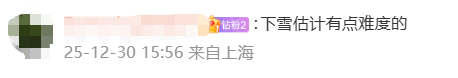 上海还有可能迎来2026年的第一场雪。雨水方面,1月1日白天,上海有小雨,西部、北部郊区及上海高层建筑将出现短时雨夹雪或零星小雪,增加了新年的氛围感。气象资料显示,上海常年平均初雪日在1月9日。