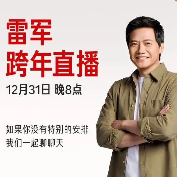 小米创办人、董事长兼CEO雷军宣布,将于12月31日晚8点做一场跨年直播。