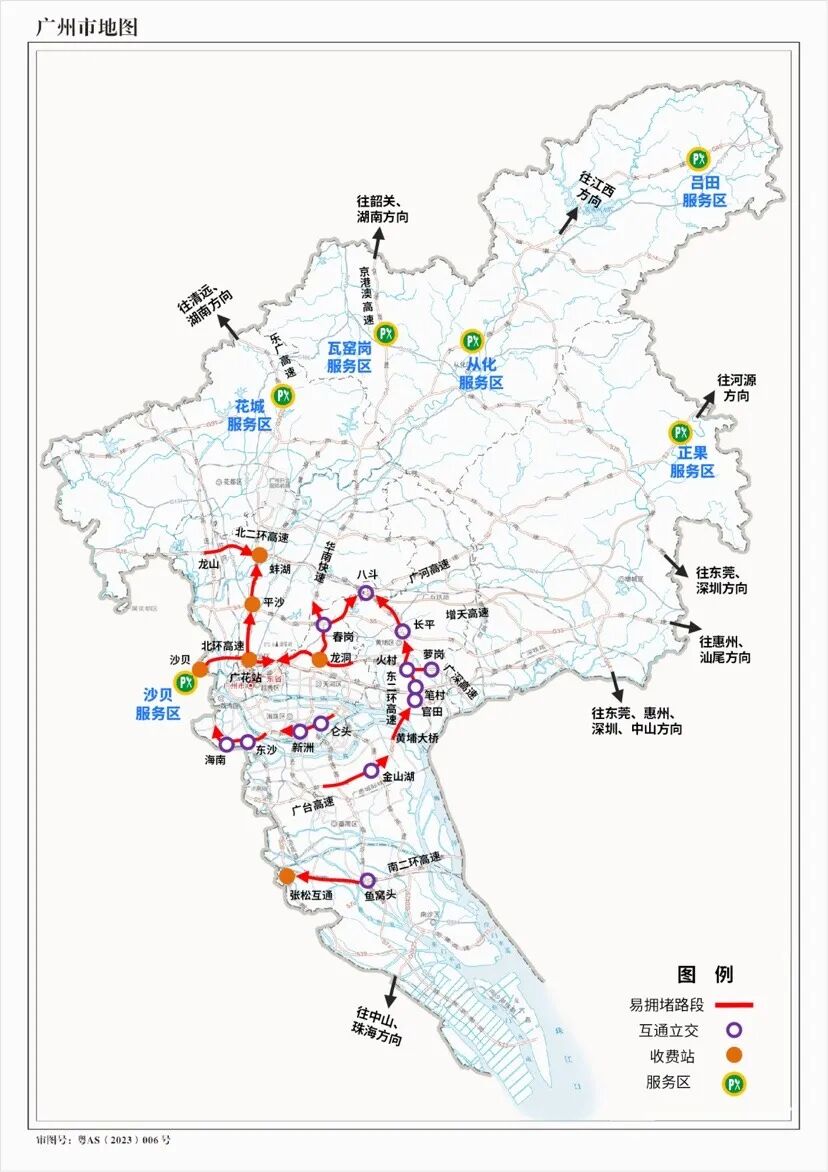 正佳广场、天河城、白云山、长隆旅游度假区、三溪美林天地、永庆坊、广州荔湾山姆会员店等周边道路。