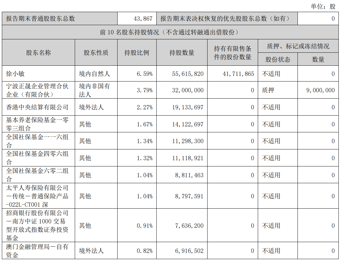 银轮股份的实际控制人为董事长徐小敏,直接持有公司6.59%股份,并通过控制宁波正晟企业管理合伙企业(有限合伙)拥有公司3.79%的表决权,合计拥有10.38%的表决权。过往履历显示,徐小敏出生于1958年,大专学历,自1975年进入天台机械厂工作,从基层做起,1999年公司改制起一直担任董事长至今,2024年从公司获得的税前报酬为184.14万元。