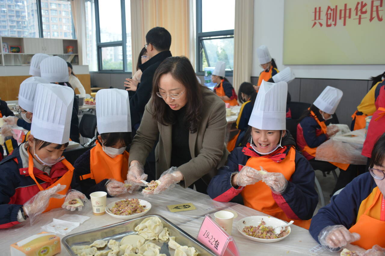 午餐时分,香港师生跟着汇东实验学校杨晓慧老师学习包饺子的技法。从饺子蕴含的团圆寓意、流传千年的由来典故,到多种多样的馅料搭配,再到捏褶塑形的精巧手法,老师耐心示范、细致讲解,大家学得有模有样,兴致盎然。