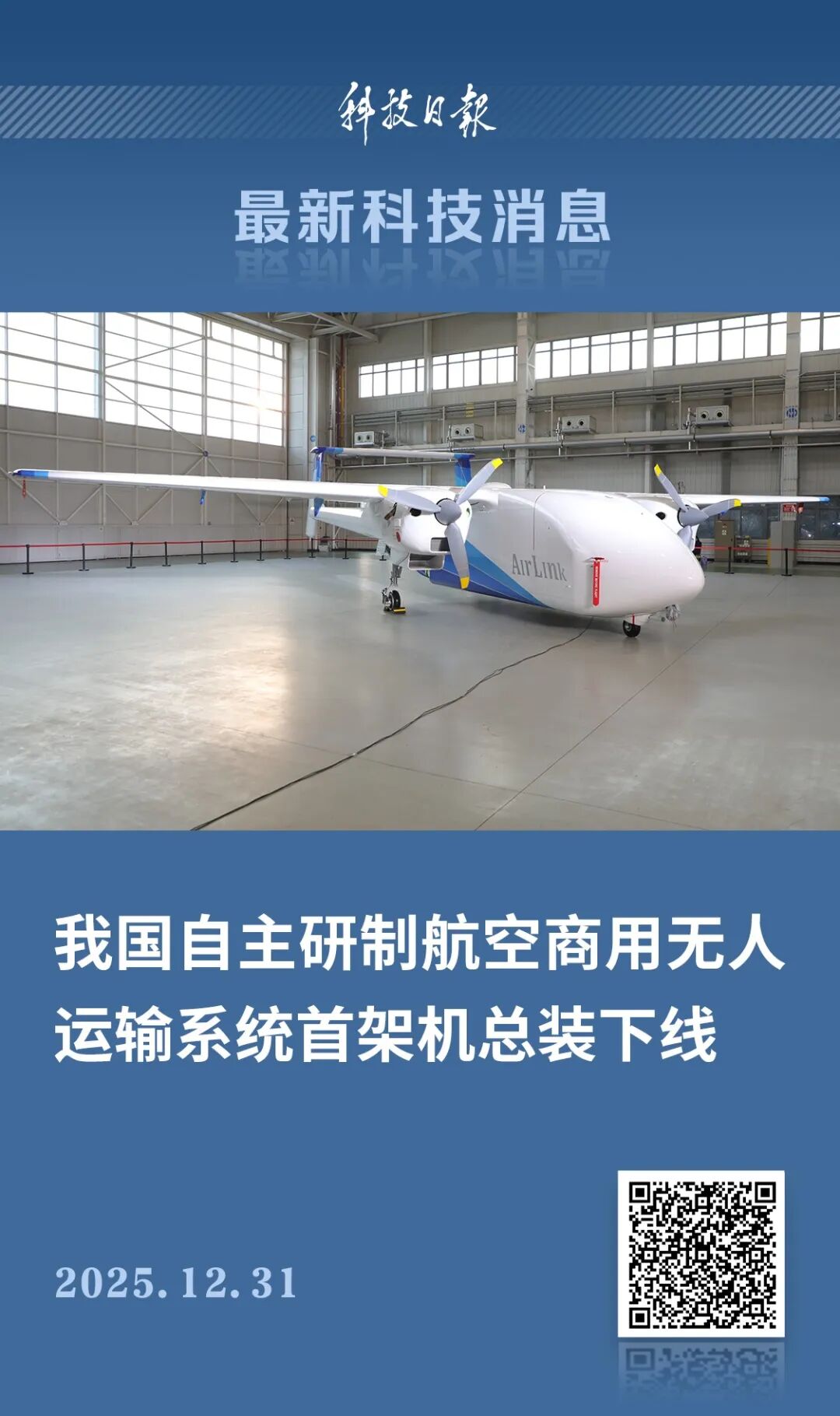 记者从中国航空工业集团获悉,12月29日,由航空工业西飞民机自主研制的新一代新舟鸿鹄HH-200航空商用无人运输系统首架机在陕西阎良总装下线。这标志着我国在探索“低空+物流”无人运输的新质装备创新应用模式方面实现关键技术突破。