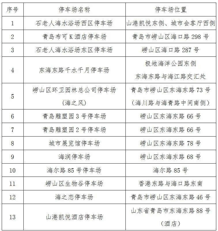 在2025年12月31日16:00 至次日02:00时间段内,经检查后允许停放,停车场饱和后禁止车辆进入。其中序号1、2的停车场,仅允许经香港东路出入口进出。