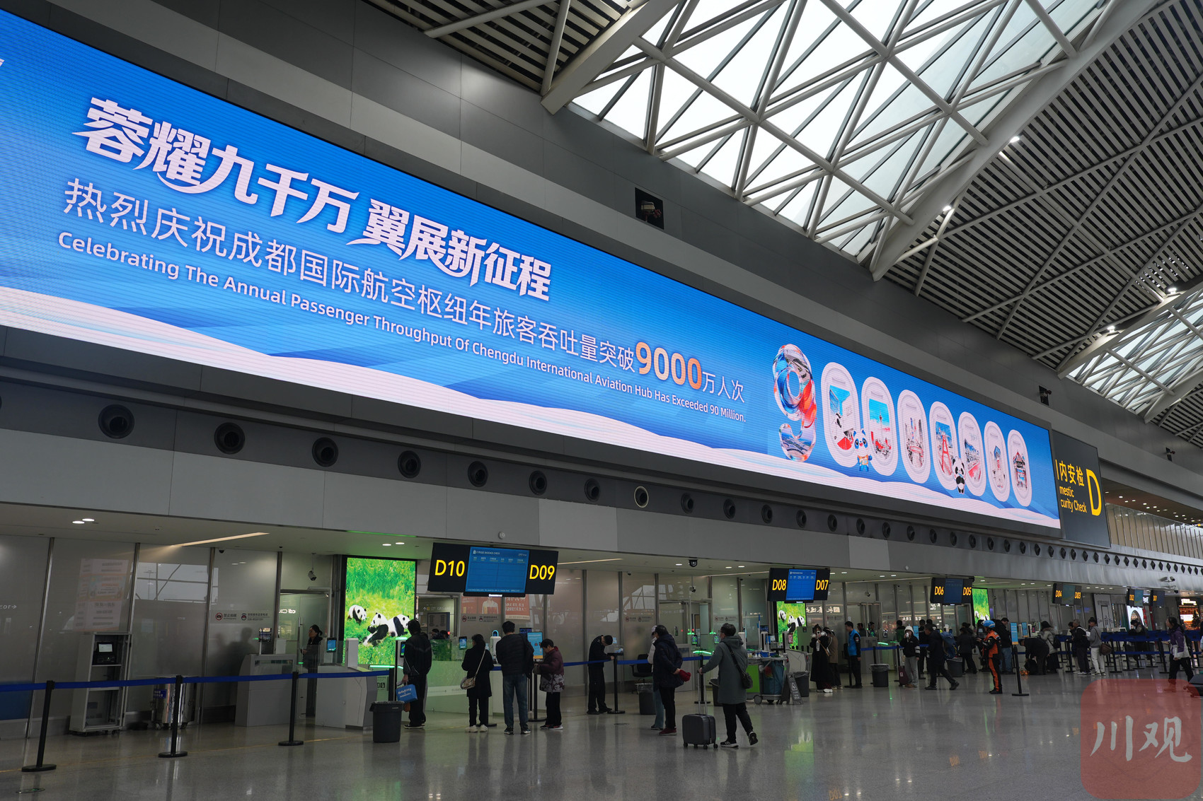 年旅客吞吐量突破9000万人次,是成都航空枢纽“两场一体”高质量发展的新里程碑,将进一步巩固成都航空枢纽在全国民航的“第四极”地位。