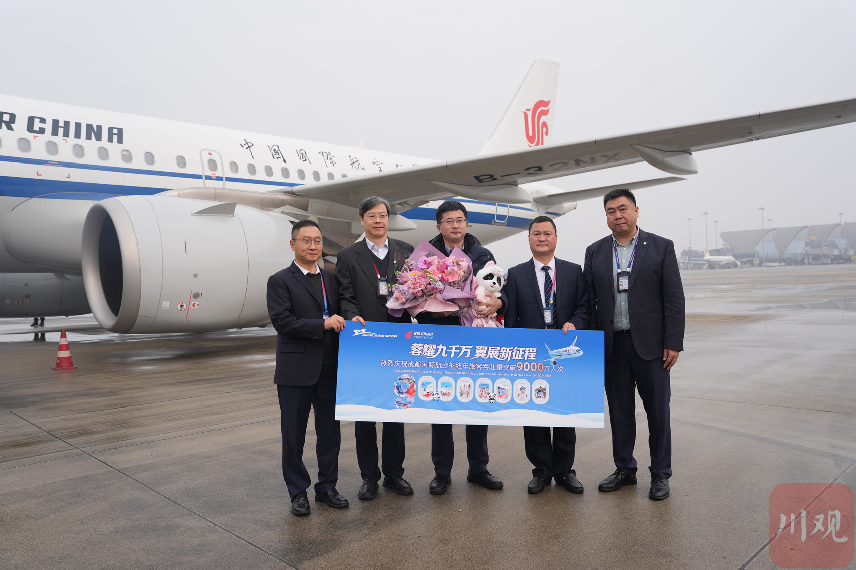 来自电子科技大学的科技工作者姜辉是第9000万名旅客, 他表示很荣幸能见证这一历史时刻,“成都航空的发展让四川和全国乃至世界的联通更顺畅,也让成都的教育和科研影响力更广。”