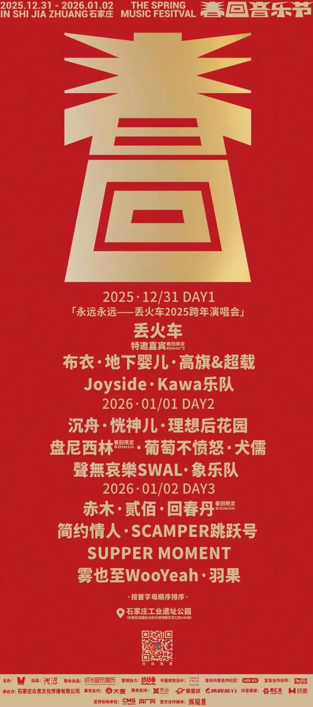 2026年1月1日0:15演出结束开始摆渡,接驳车人数上满即走,请有序遵从现场指引,合理安排上车时间,共同为音乐节的平稳有序举办保驾护航。