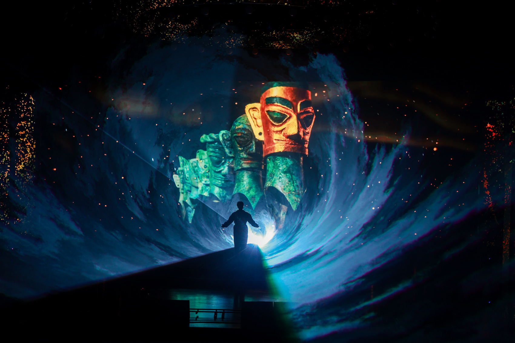 “何以德阳”篇章以跨时空音画《三星伴月》呈现三星堆文化与AI虚拟人的对话;《山河诗心》创新融合诗歌与川剧,赋予经典当代回响。非遗羌舞《九顶山歌》、舞蹈《走祥云》以及《蜀道》《何以德阳》等歌曲联唱,共同展现出德阳深厚的文化积淀。