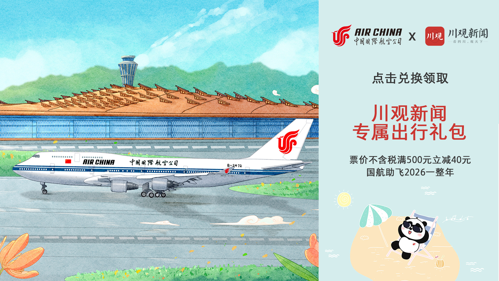 川观新闻x中国国航专属出行礼包(满500-40元优惠券)
