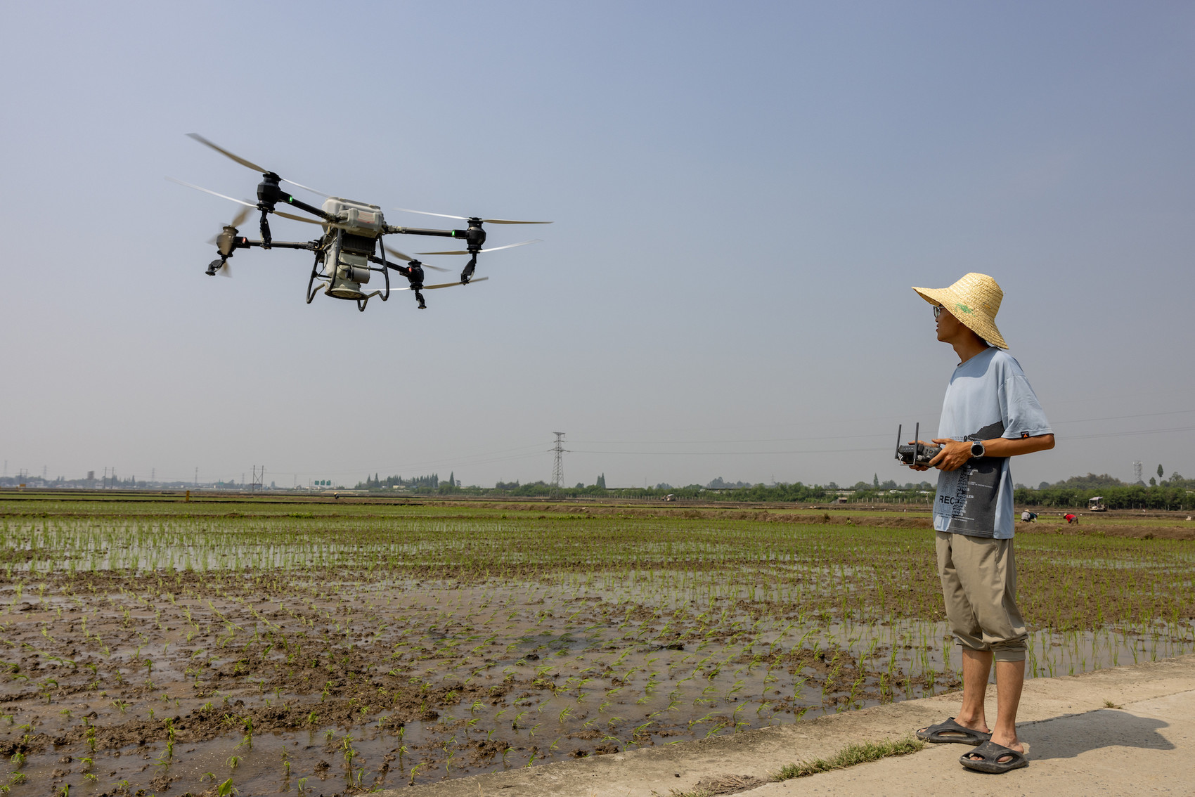 眉山市东坡区太和镇永丰村,种粮大户正在操作植保无人机。侯建明 摄