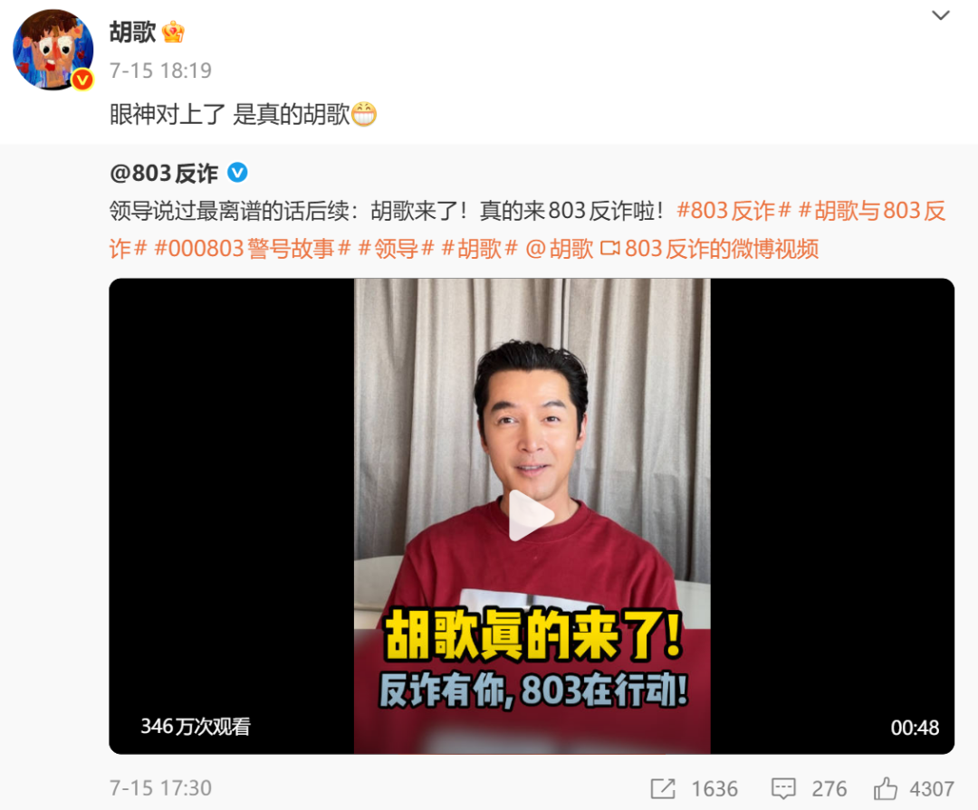 此前,胡歌也与“803反诈”有渊源