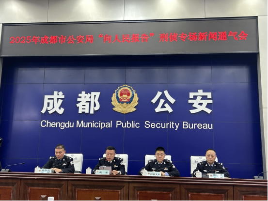 12月31日,成都市公安局召开2025年“向人民报告”刑侦专场新闻通气会,介绍今年以来成都公安刑侦部门打击刑事违法犯罪、维护全市社会治安大局稳定、服务保障高质量发展的工作情况。