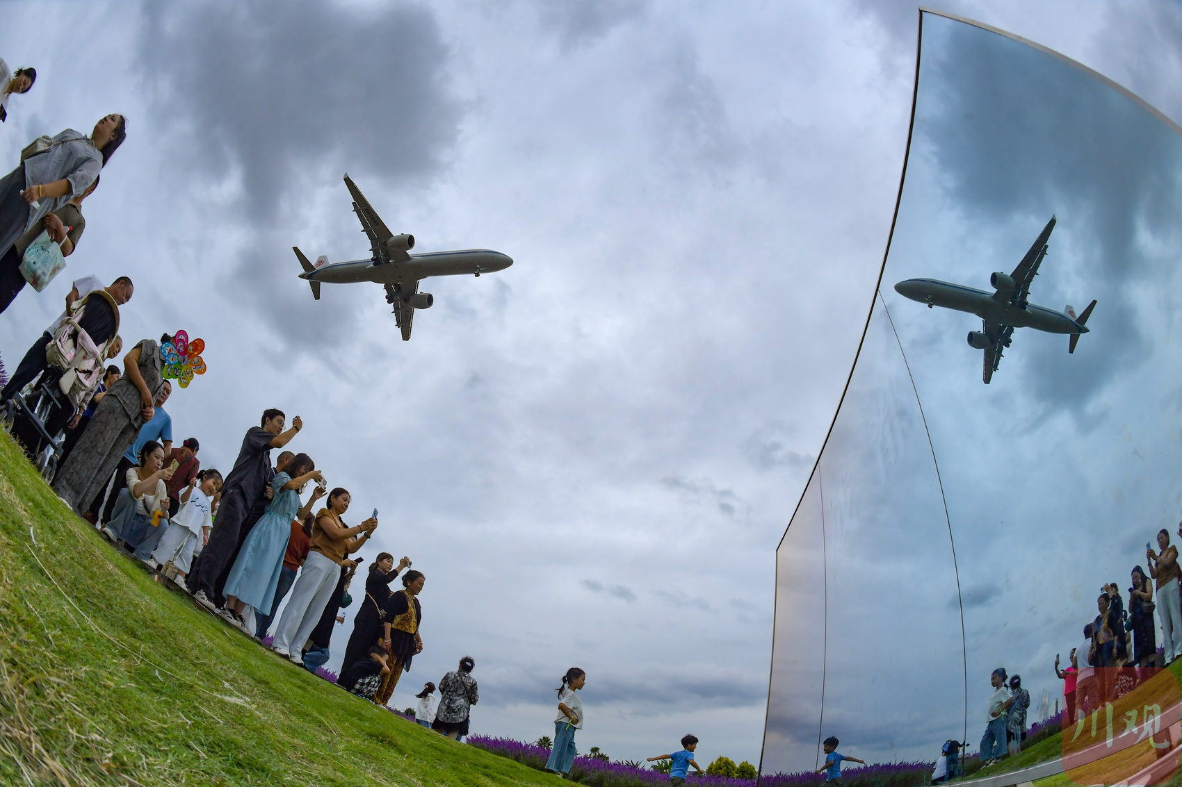 十二载晨昏交替、四季流转,记者自2013年起专注追拍飞机,用镜头记录下无数以航空为底色的城市剪影。在双流国际机场周边,飞翔早已融入城市肌理:晨曦中,客机拔地而起,雪山映朝阳,尽显蓬勃活力;夕阳下,摩托骑手与归航客机的剪影交融,勾勒出都市幸福轮廓;花田边,孩童骑在大人肩头追逐航迹,让飞翔梦想在心中萌芽;车间里,工程师精准检修的每一个动作,都为平安起降筑牢防线。这里的每一处场景都藏着故事,每一个身影都是城市发展的主角。