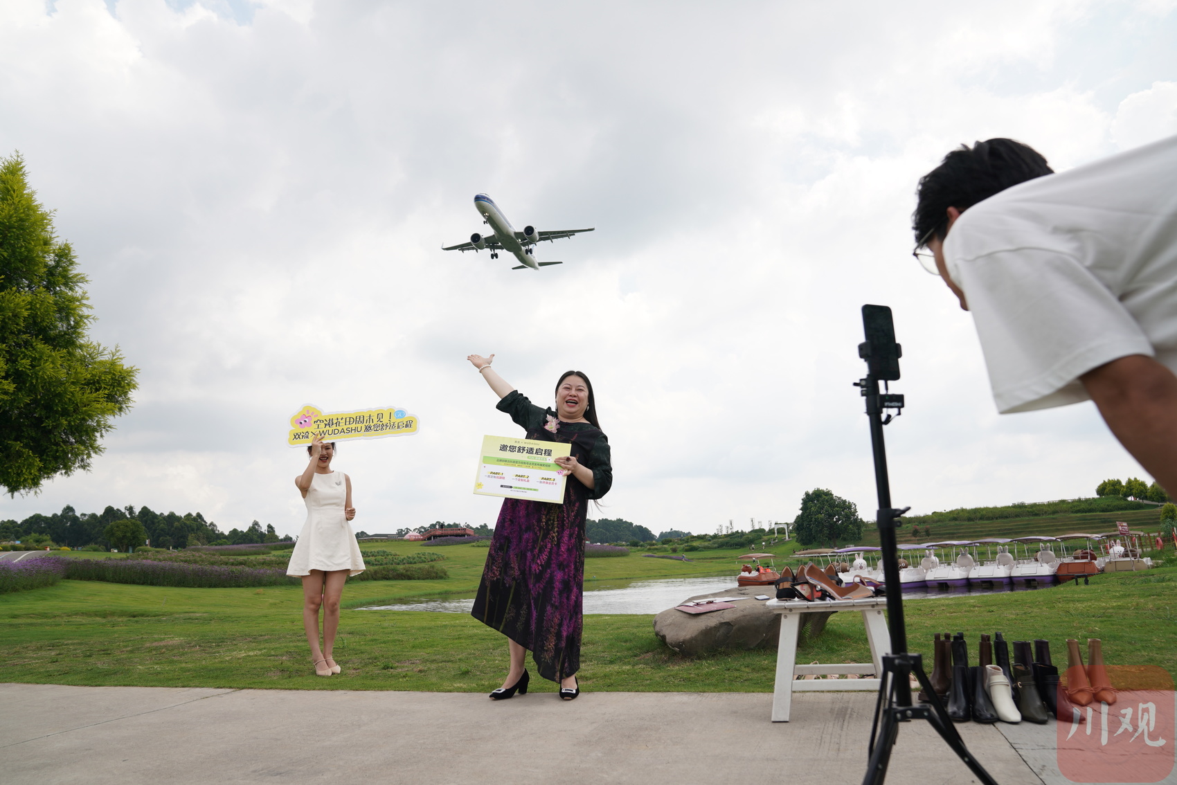 2025年7月24日,知名电商带领团队一边直播一边向网友推介双流区空港花田。