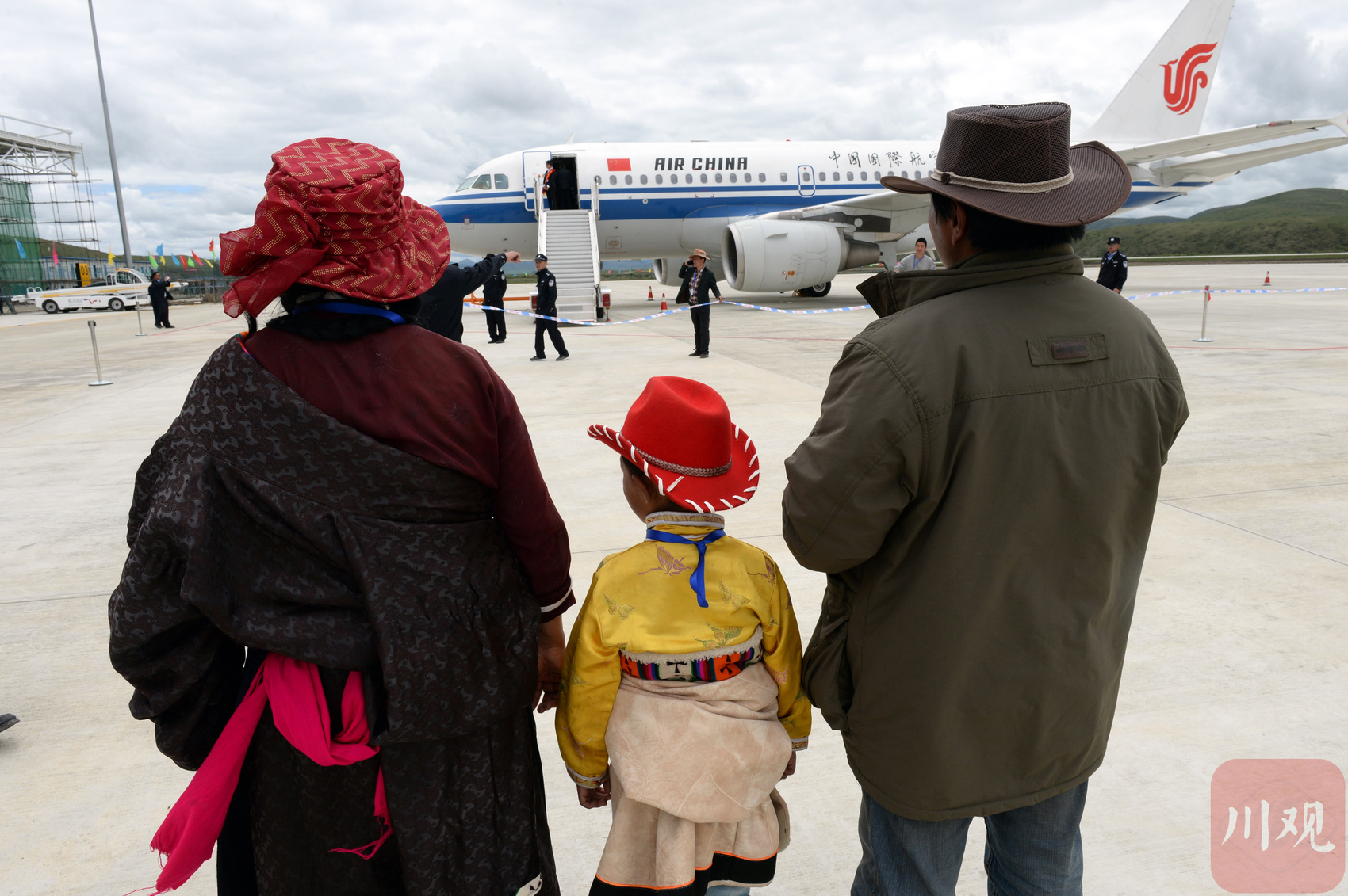 2014年6月5日,在四川阿坝红原机场,从成都双流国际机场试飞而来的空客A319客机迎来当地群众观看。