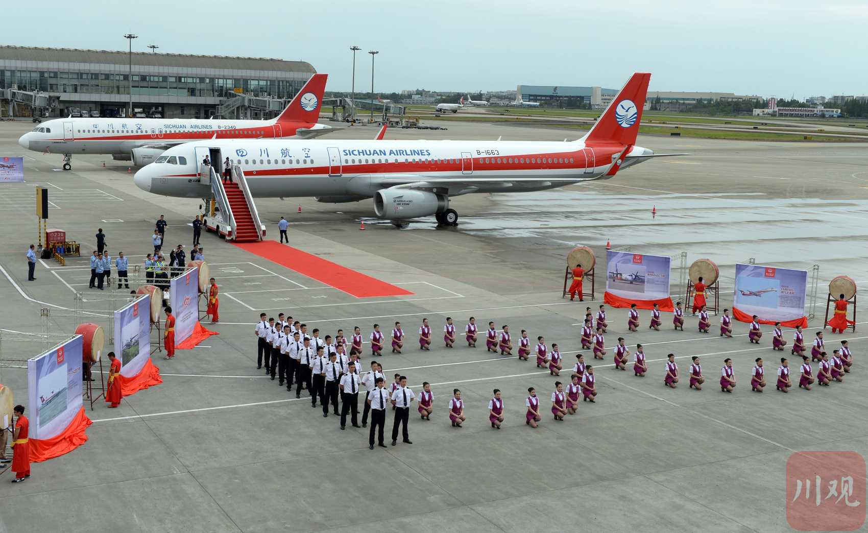 2015年5月22日,一架编号为B-1663的全新空中客机A321飞机降落在成都双流机场,机场人员为迎接这第100架飞机的到来,组成“100”字样欢迎。