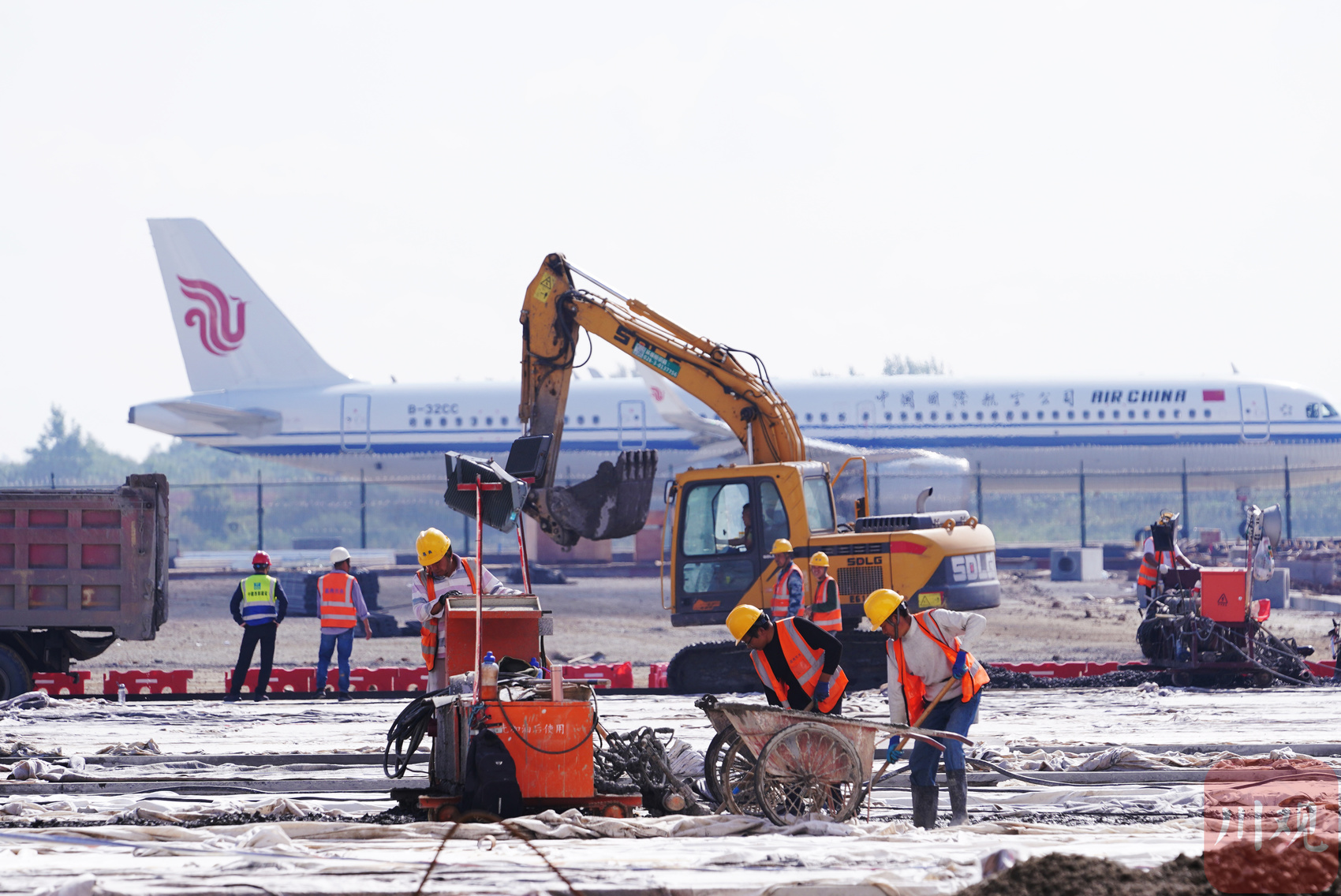 2023 年 10 月 7 日,空客全生命周期服务项目工地施工正酣,一架飞机正在滑行准备起飞。