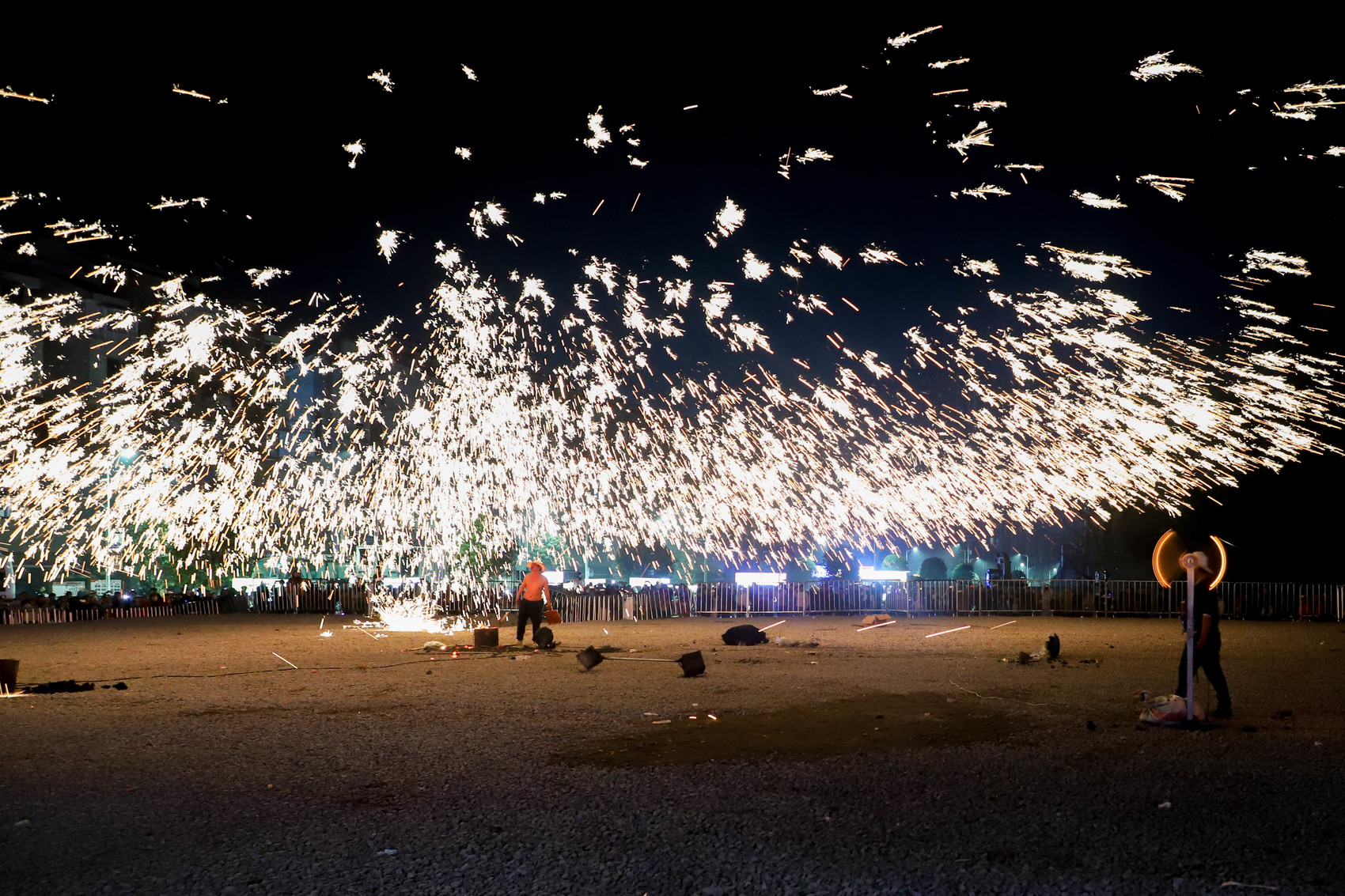 非遗打铁花表演精彩瞬间。(李林 摄)